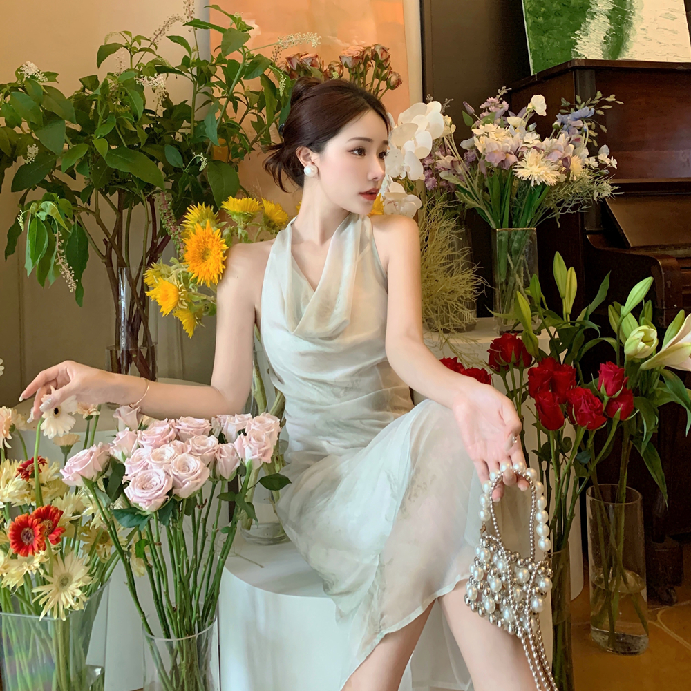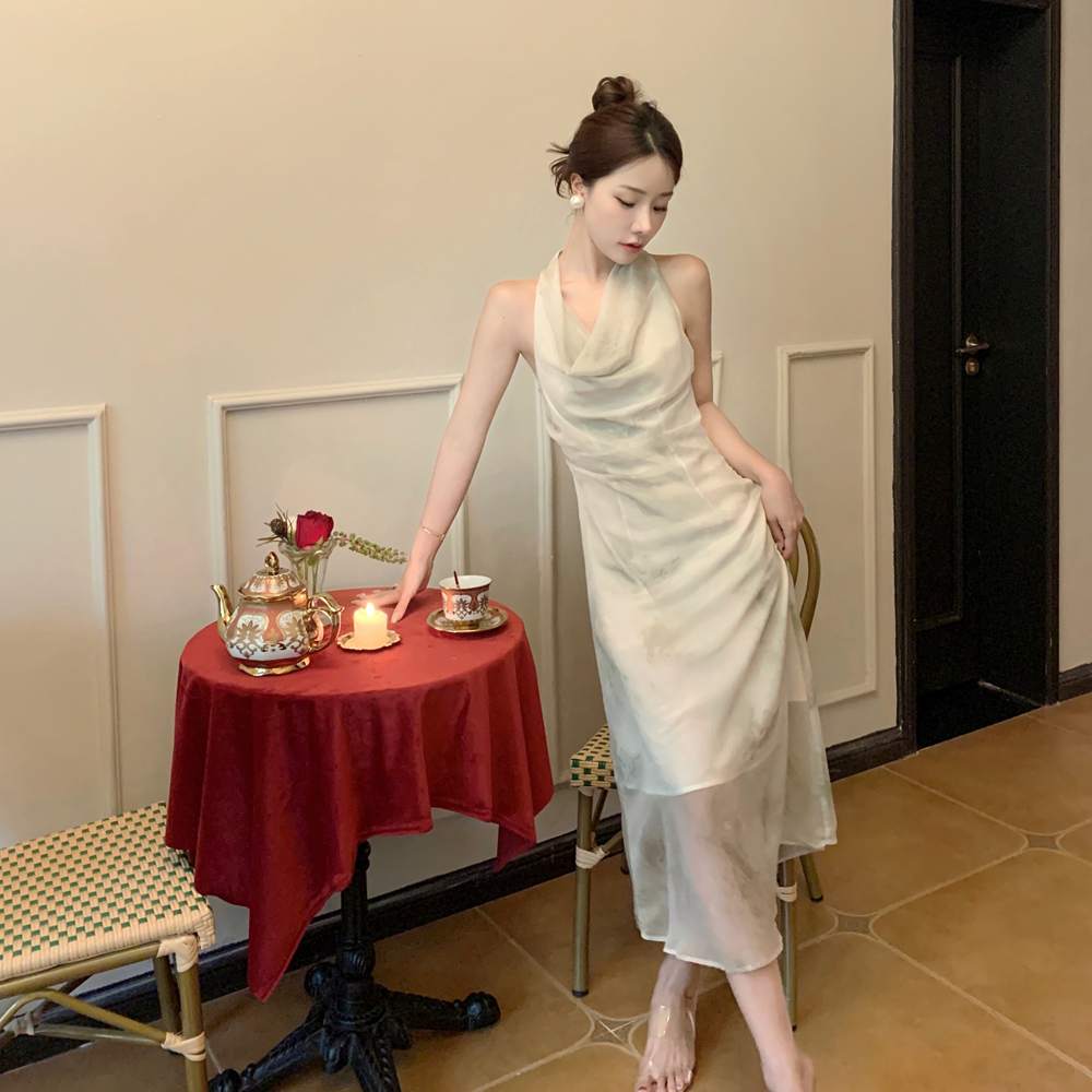 Product information :Collar type: swinging collarSleeve type: sleevelessMain fabric composition: polyester (polyester fiber)Color: beige, beigeSize Information:Dimensions: S,M,LPacking list:Dress *1