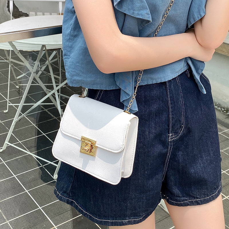 Color: white, blue, black, light green, pink, brownStyle: street trendMaterial: PULuggage size: smallPopular elements: locksBag shape: horizontal squareOpening method: lock