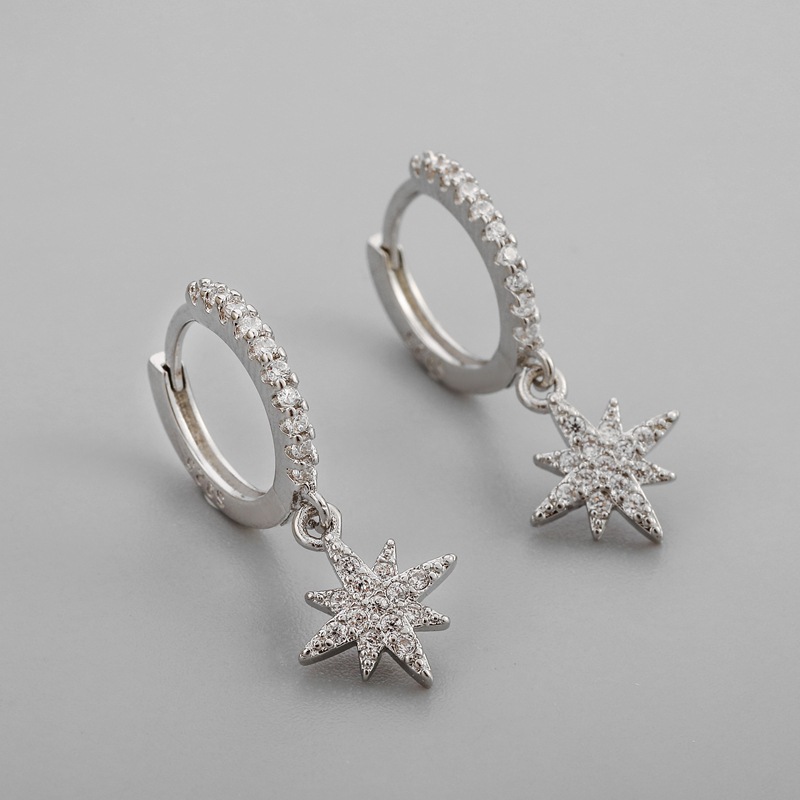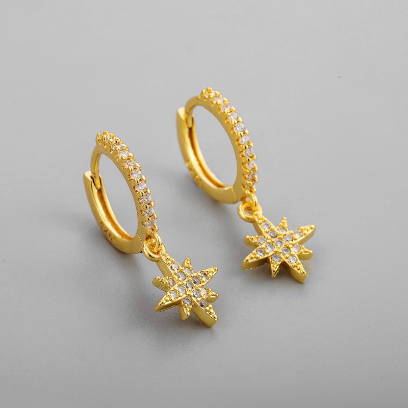 Color: Full Rhinestone Eight Pointed Star Earrings-Gold, Full Rhinestone Eight Pointed Star Earrings-Silver