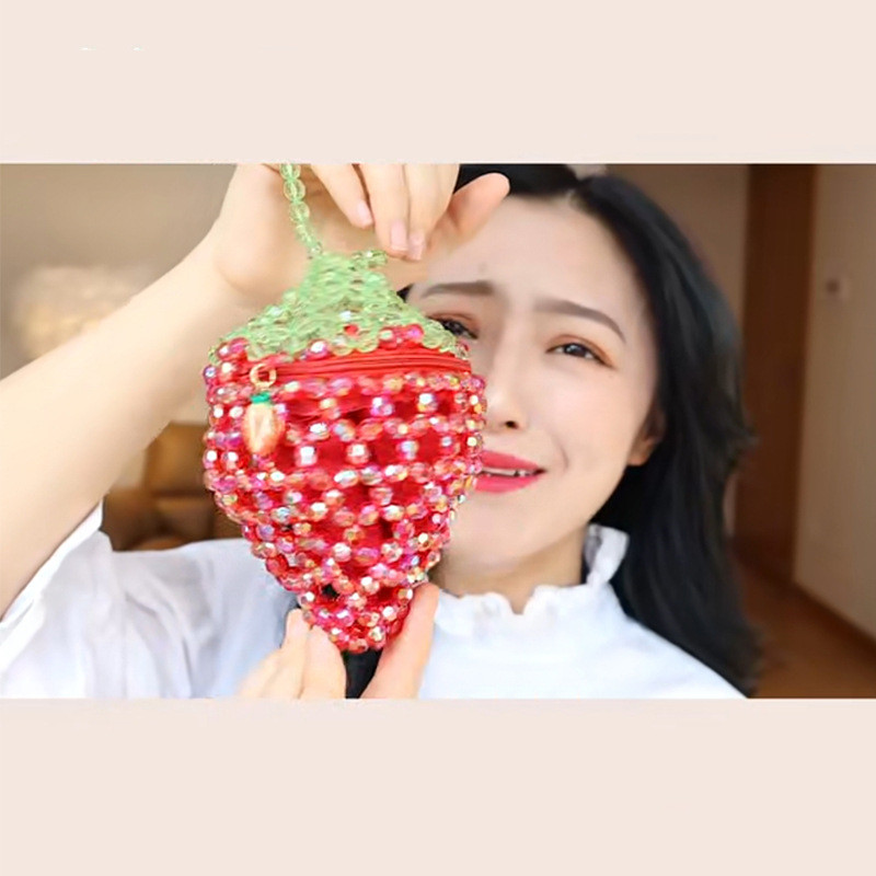 Applicable scene: LeisureBag size: mediumStyle: VintagePattern: StrawberryPopular elements: handmade beadingBag shape: heart shapeFabric texture: PUcolor: redStyle: Handbag