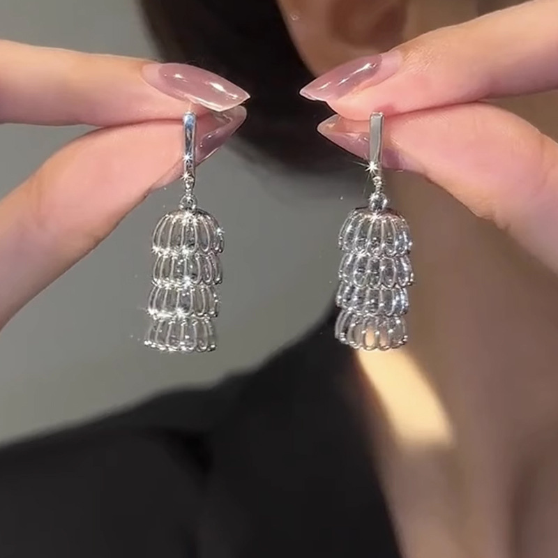 Movement Earrings Silver Needle Flower Hollow Out Smart