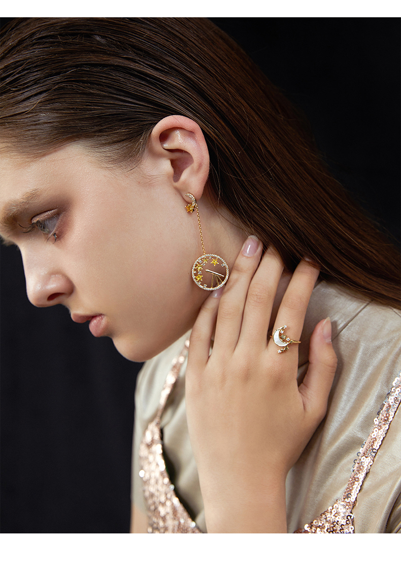 Light luxury star and moon ring