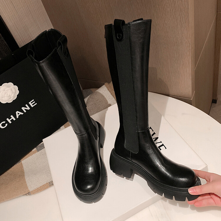 Product information :Leather features: cowhideToe shape: round headPopular boots: knight bootsTube height: high tubeColor: black, whiteSize Information:Size : 34,35,36,37,38,39