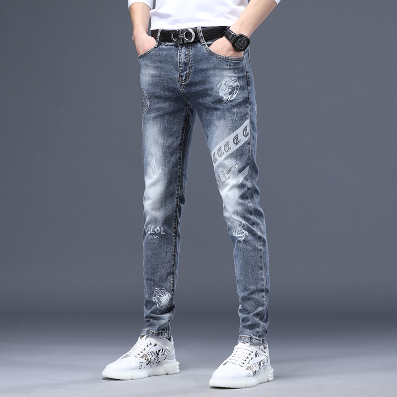 Color: light blue C07 printed jeans, black 860 printed jeans, light blue 920 printed pants, light blue 921 printed jeans
