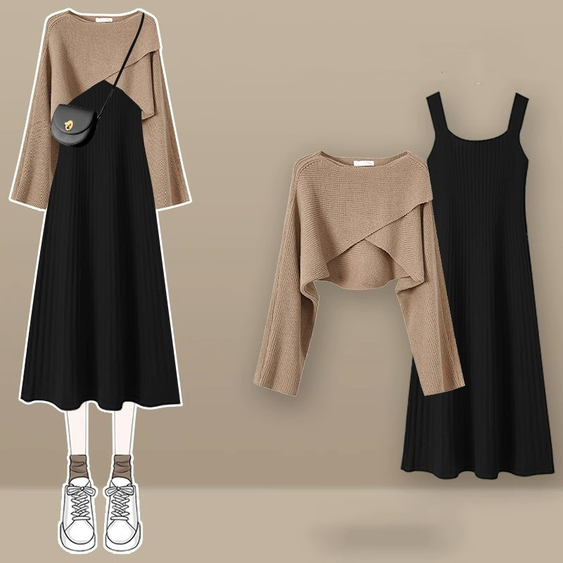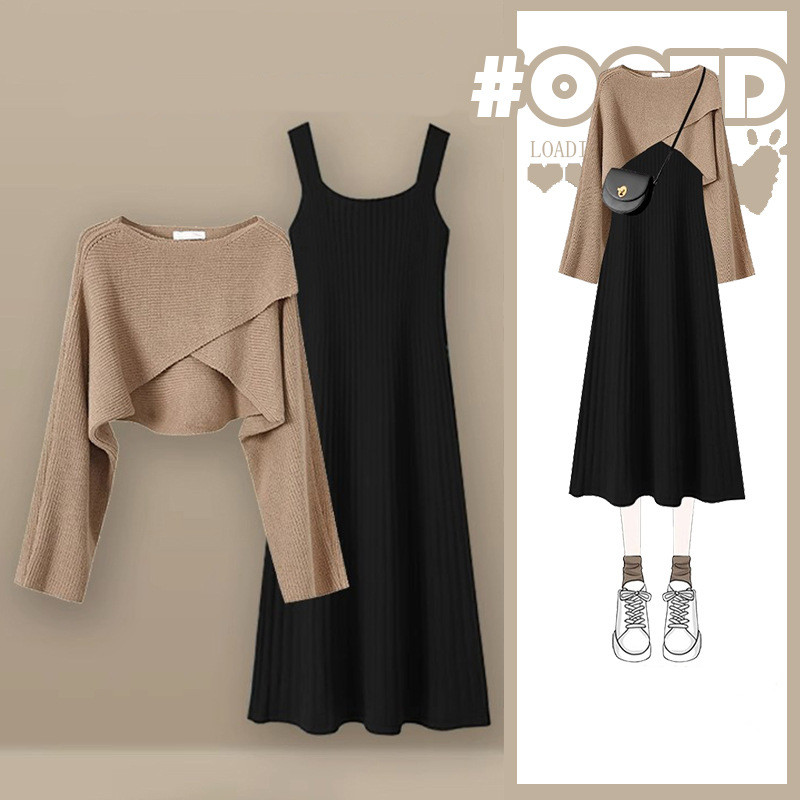 Product information:Pattern: solid color Fabric name: Chenille Color: khaki coat, khaki coat black skirt Size: M,L,XL,2XL Style type: Japanese and Korean casual