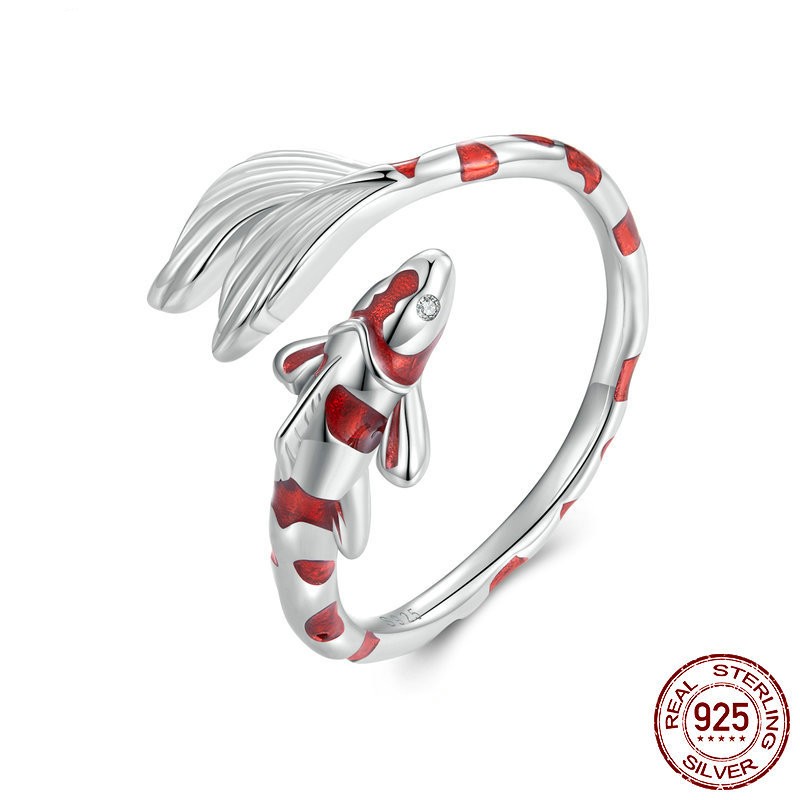 S925 Sterling Silver Red Lucky Koi Ring
