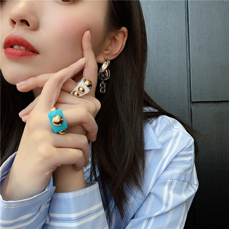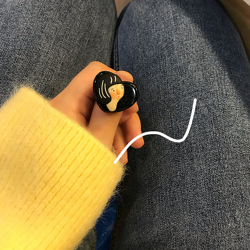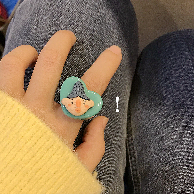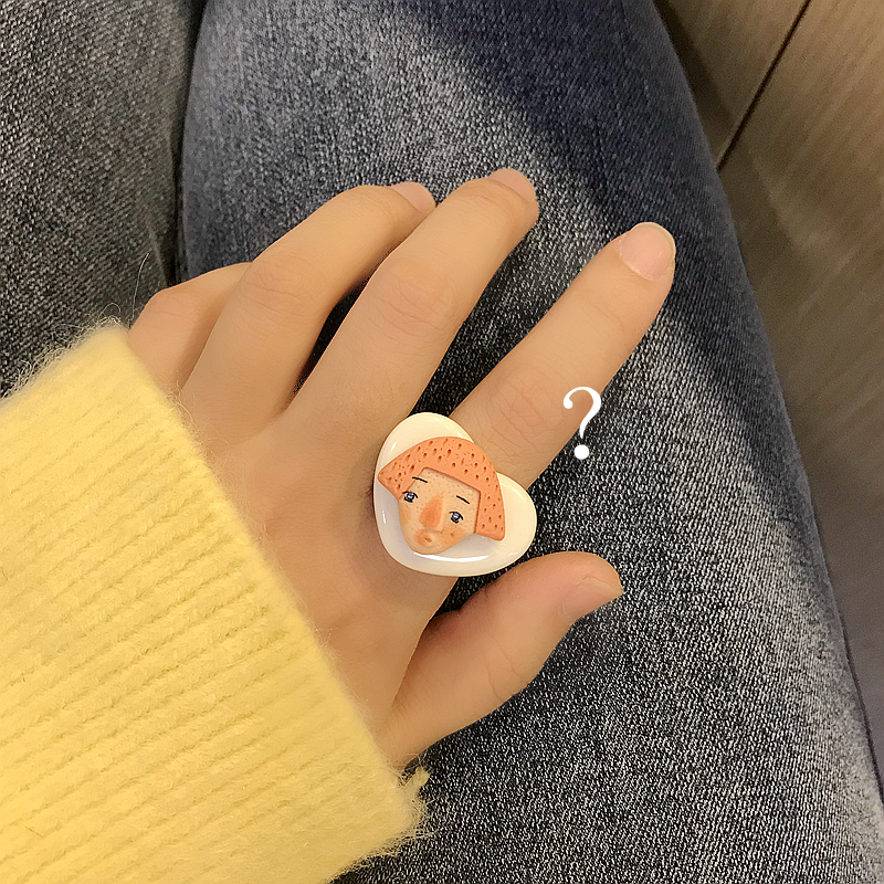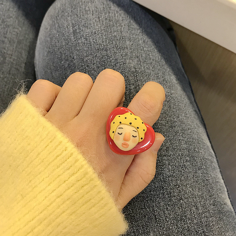 Cartoon Character Portrait Girl Ring Korean Niche Design Resin Love Color