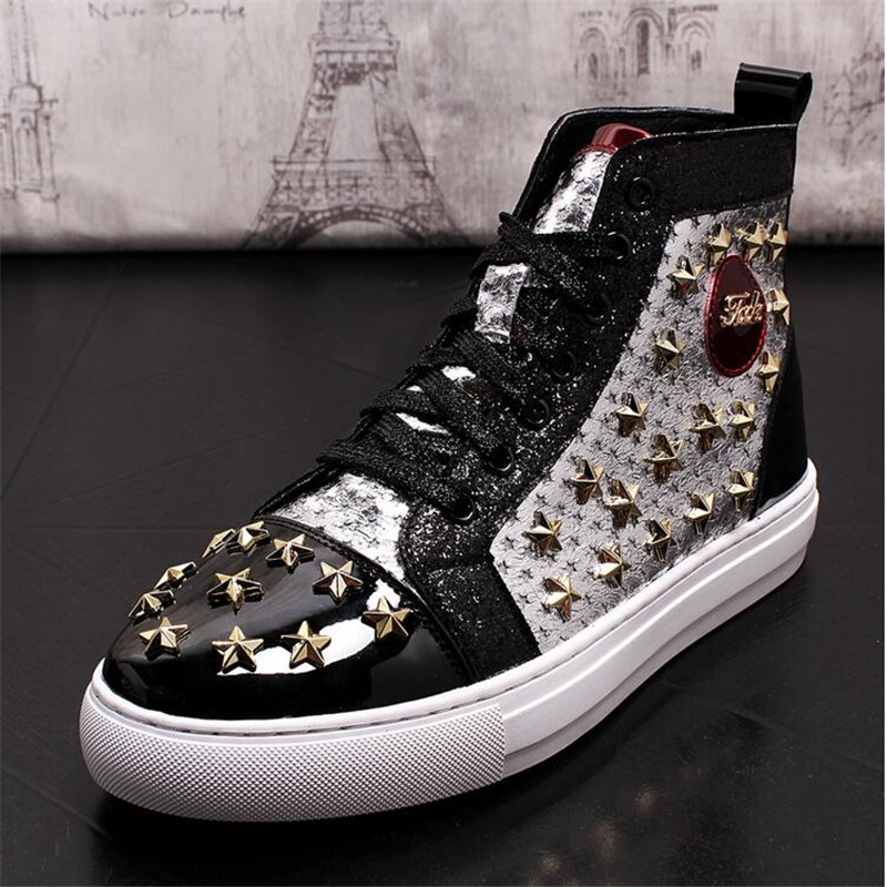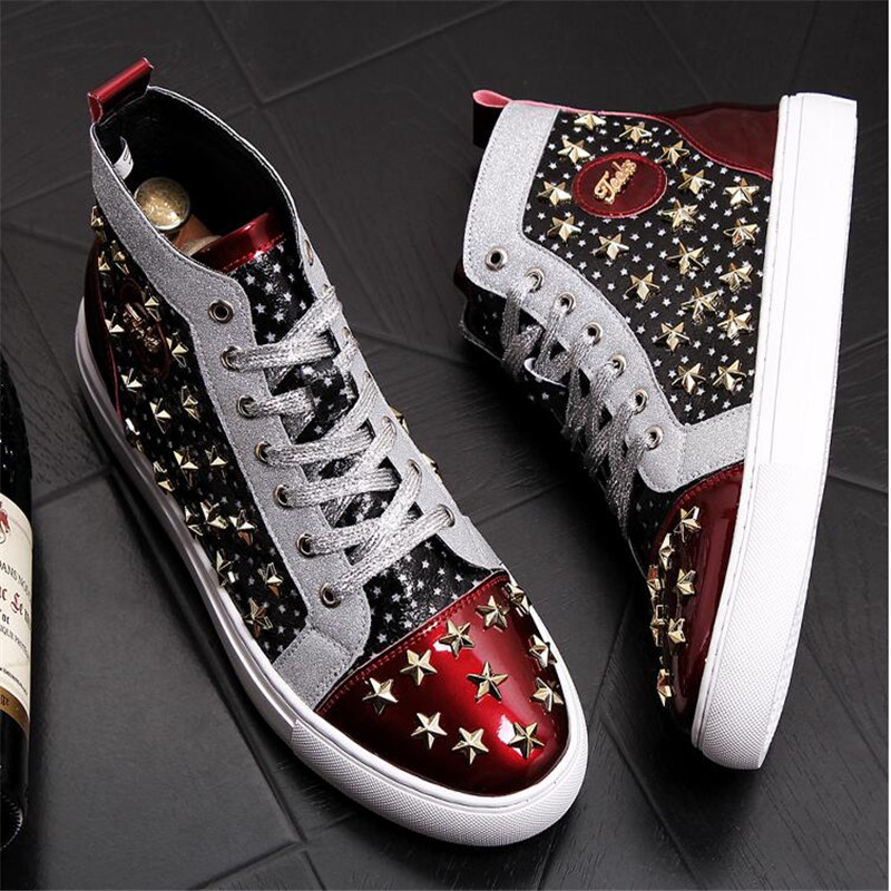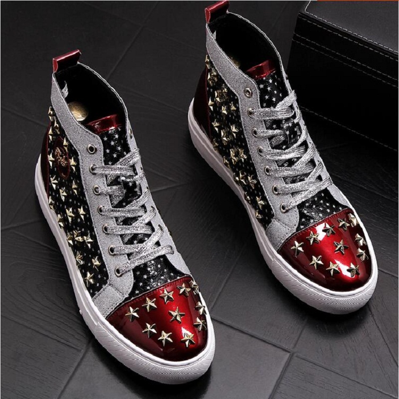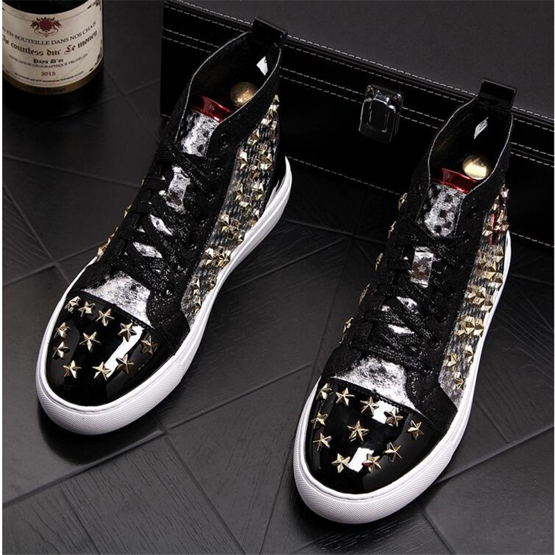 High-top punk studded casual shoes