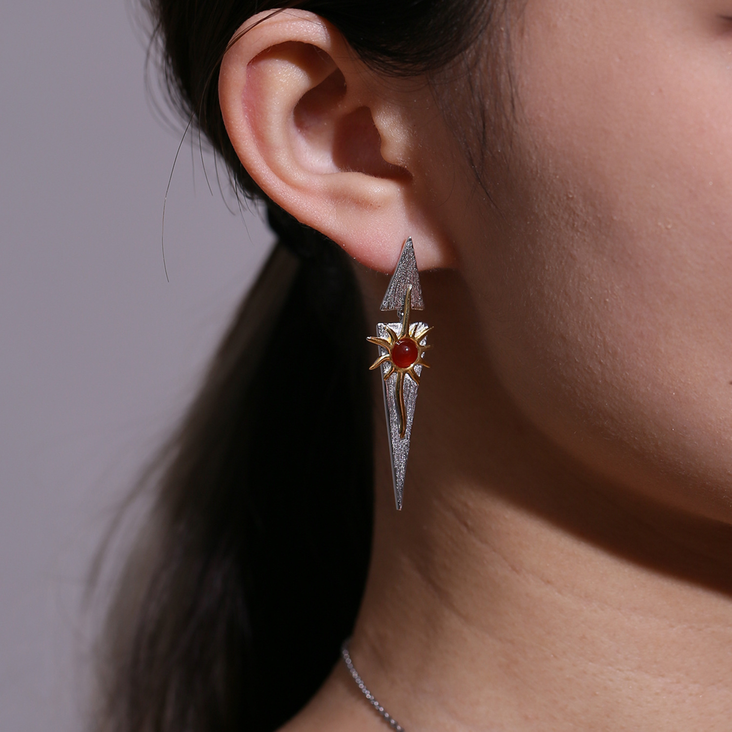 Color: Sun Goddess red agate earrings, Sun Goddess amethyst earrings, Sun Goddess topaz earrings