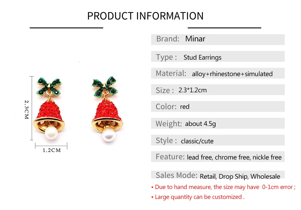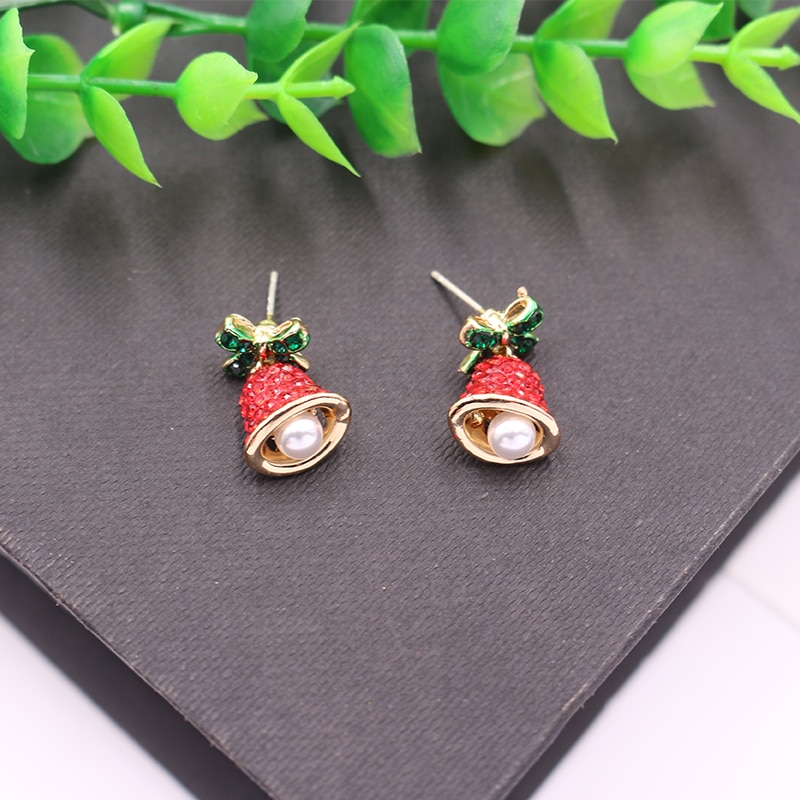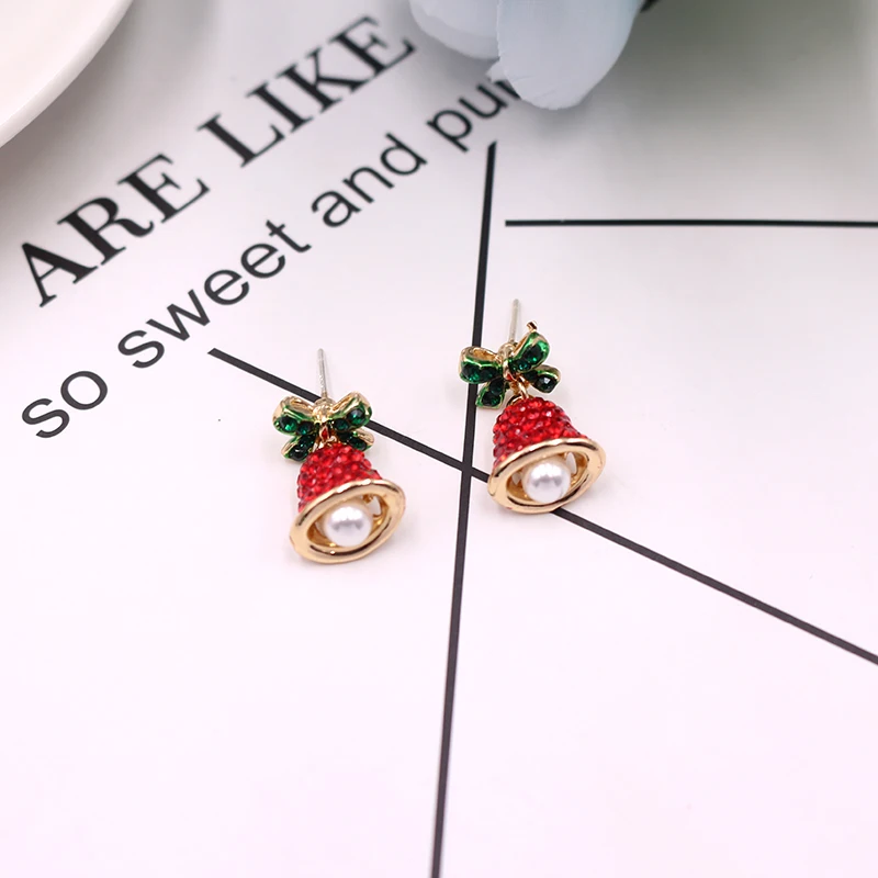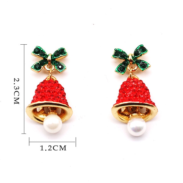 Christmas gift earrings girls ladies jingle bell earrings green red rhinestone bell dangling earrings cute crystal bow tie wind chimes earrings fashion jewelry