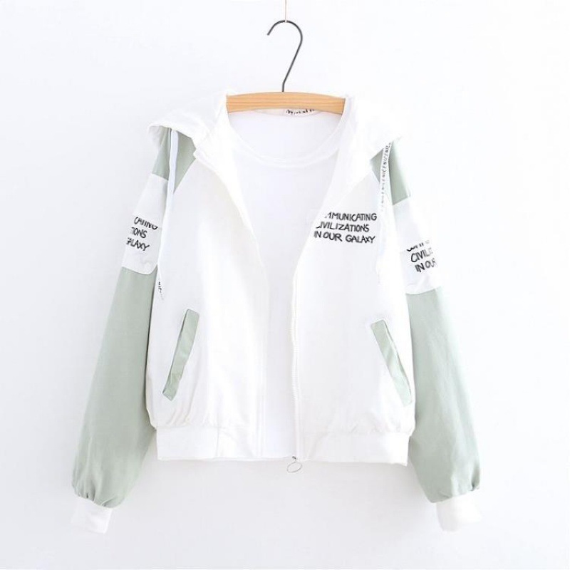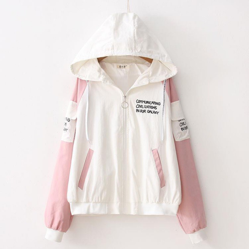 Style: CasualCollar type: HoodedClothing placket: zipperColor: letter pink, letter green