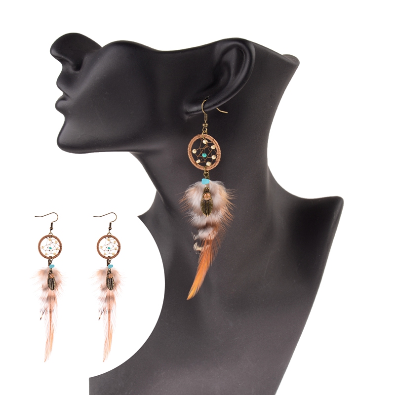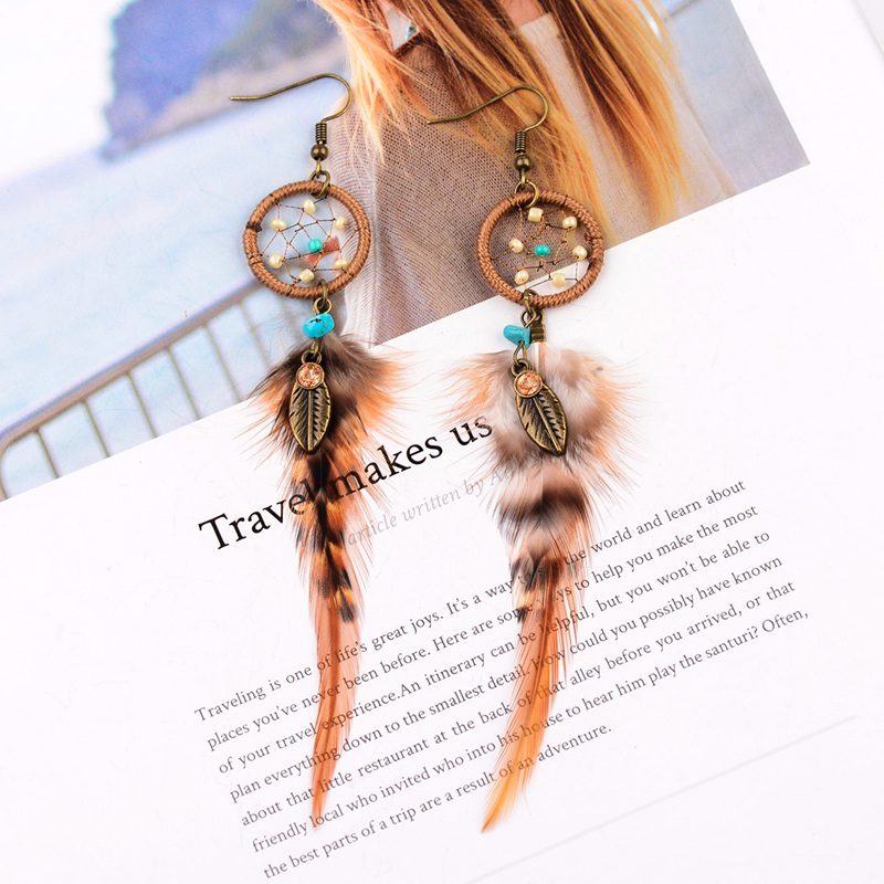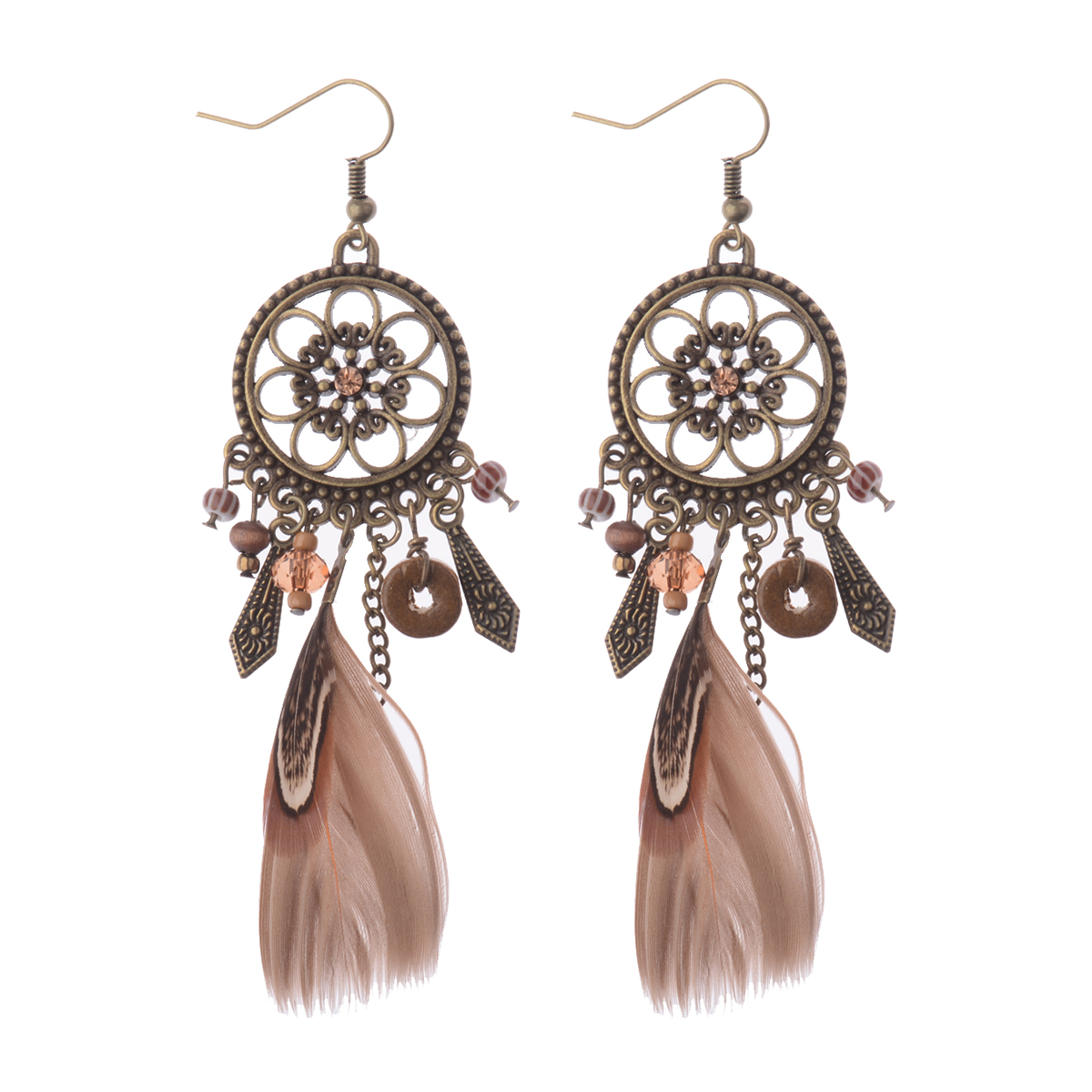 Hollow Flowers And Leaves Retro Clan Style Feather Handmade Earrings