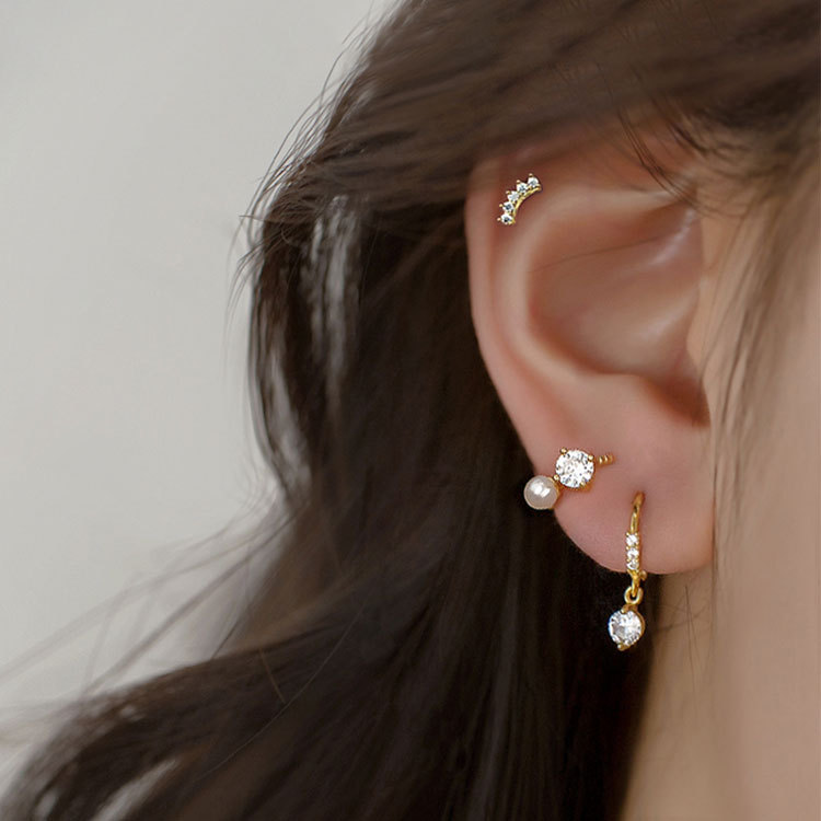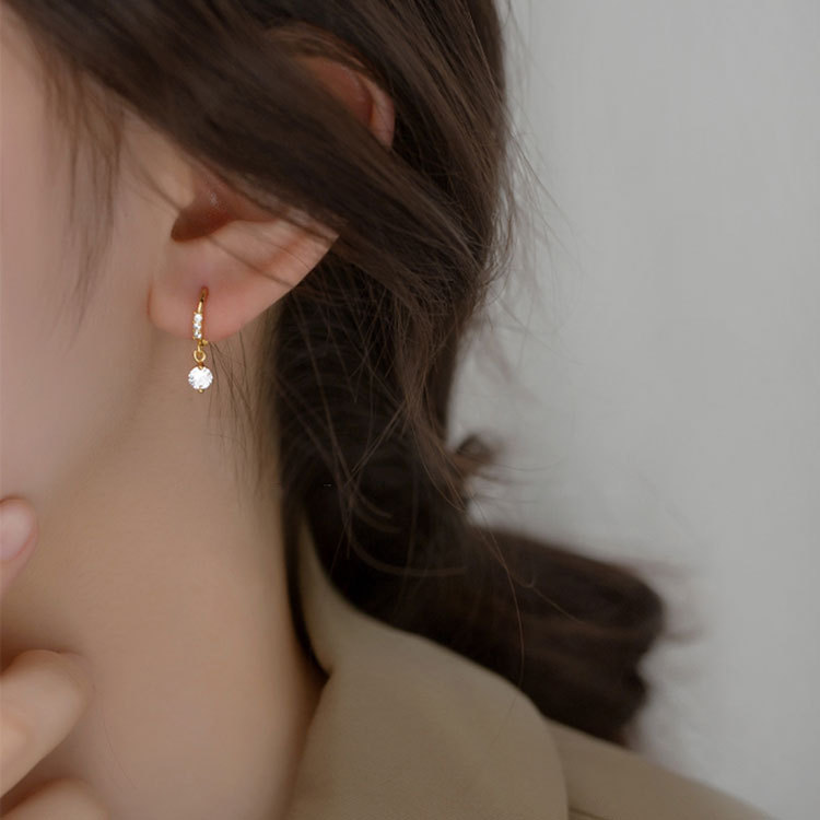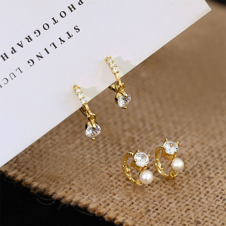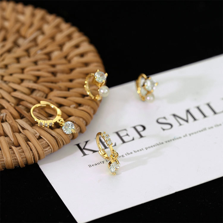 Material: SilverStyle: simpleStyle: Women'sInlay material: sterling silver inlaid with gemstonesColor: Pearl, hanging stonePopular elements: rhinestones