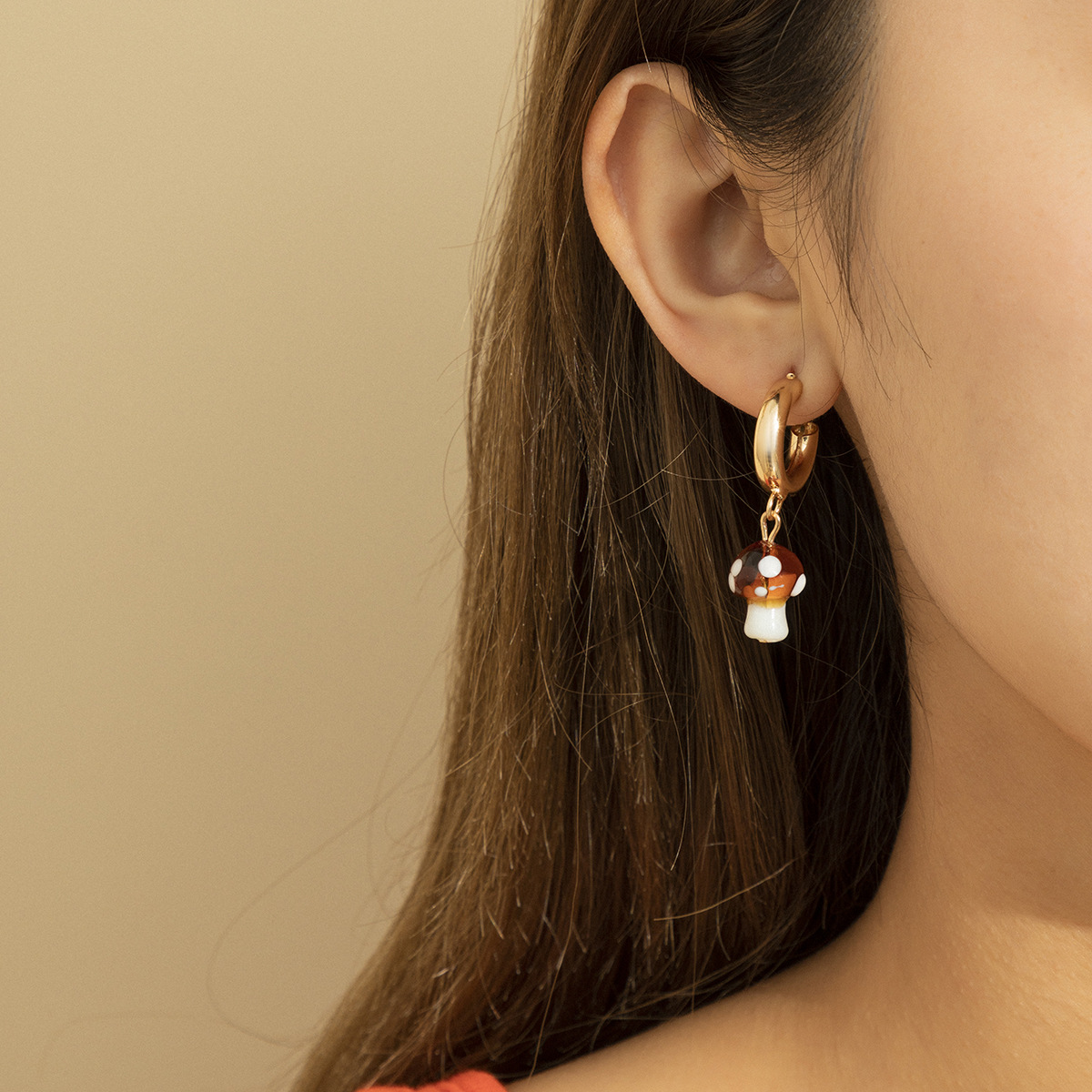 Retro Polka Dot Ceramic Mushroom Pendant Earrings Simple