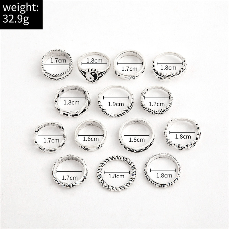 Fourteen Set Of Yin And Yang Embossed Elephant Geometric Ring