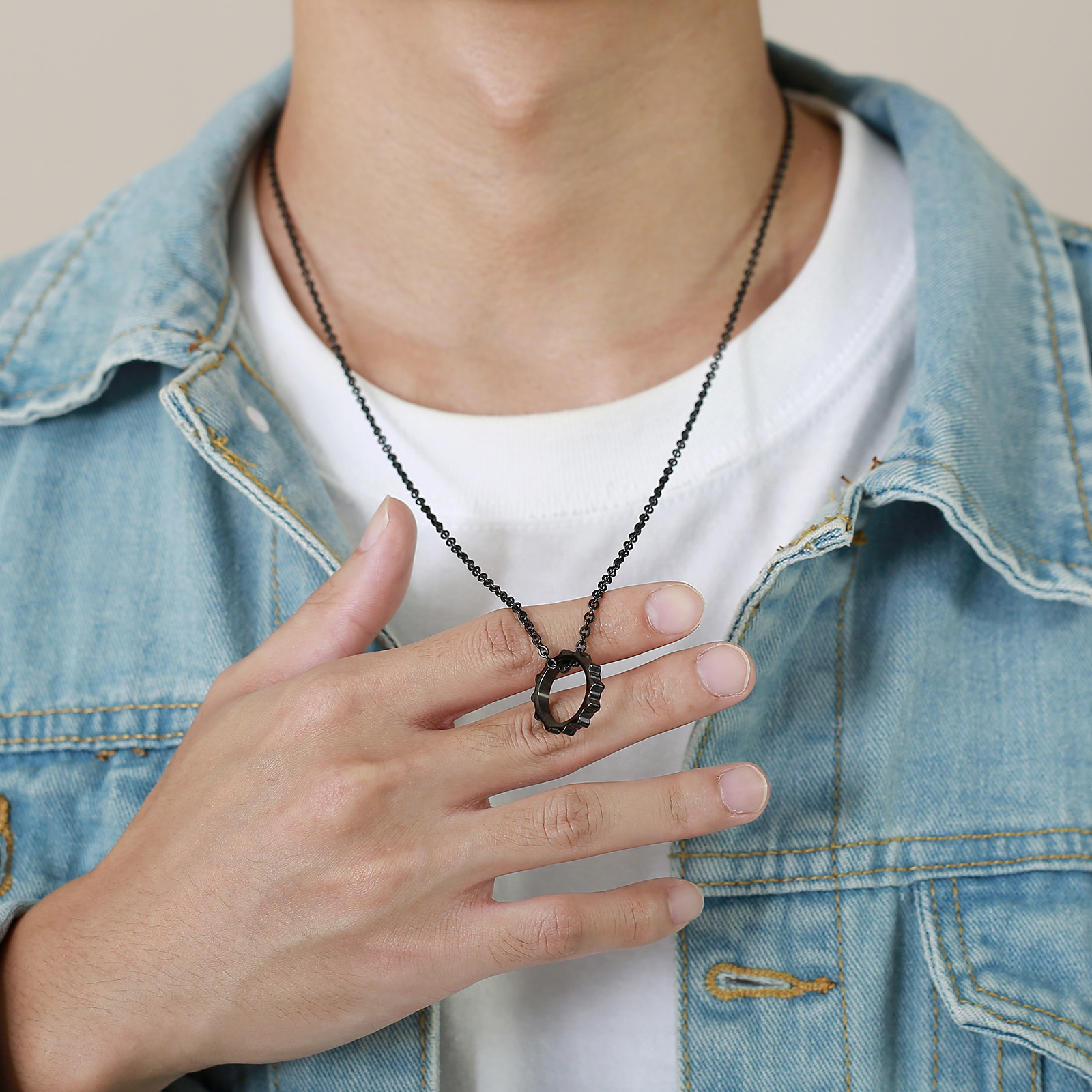 Product information :Material: titanium steelStyle: simpleStyle : Men'sShape: geometricTreatment process: electroplatingColor: steel color + chain 60CM, black + chain 60CMSize Information:
