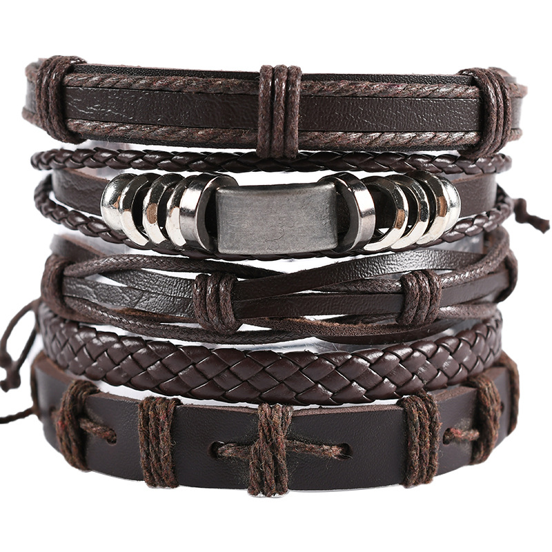 Style: Europe and AmericaMaterial: leatherProcessing technology: hand weavingType: BraceletStyle: Men'sModeling: GeometryInlaid material: not inlaid