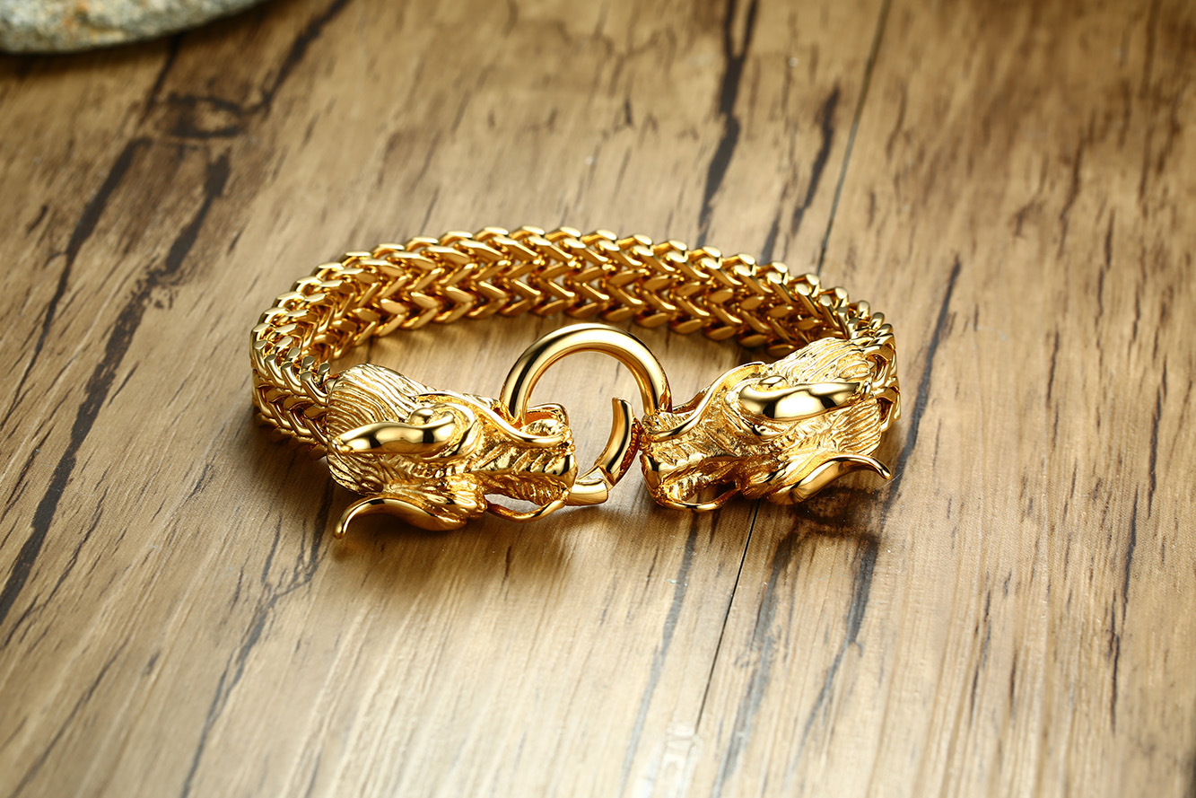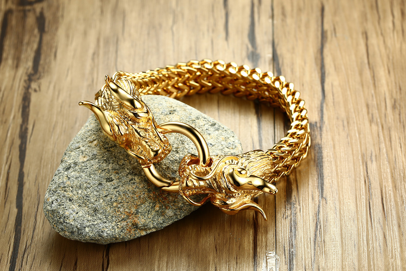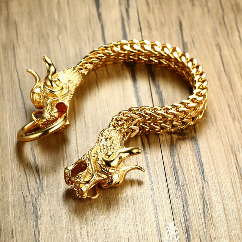 Style: European and AmericanMaterial: titanium steelTreatment process: electroplatingKind: braceletStyle: men'sModeling: Animal/ZodiacHealth function: decorationPackaging: Individually packedMosaic material: not inlaidColor: golden