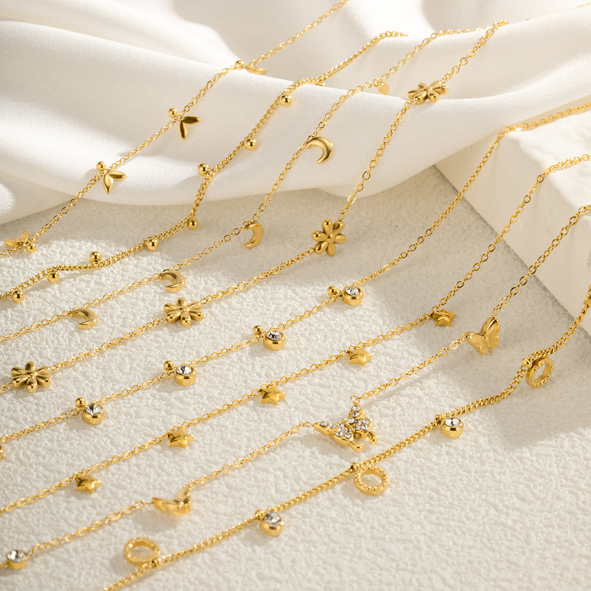 Product information:Treatment Process: Electroplating Color: Moon, fishtail, Bell, Pearl, flower, butterfly, XINGX, round beads Applicable population: Female Chain style: bamboo necklace Material: titanium steel Shape: heart shape