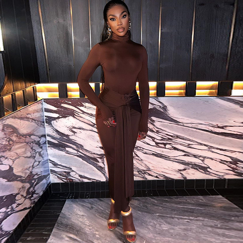 Product information: Pattern: solid color Color: dark brown, black Size: S,M,L Skirt length: long skirt Fabric name: Polyester Sleeve length: long sleeve Skirt Category: Dress