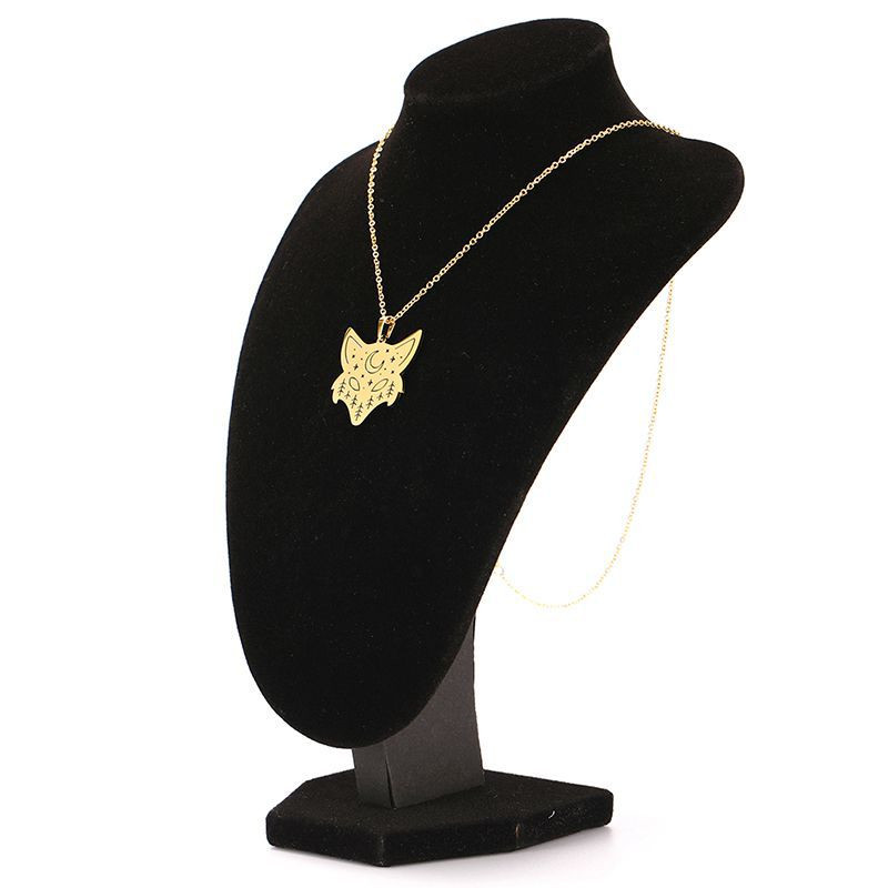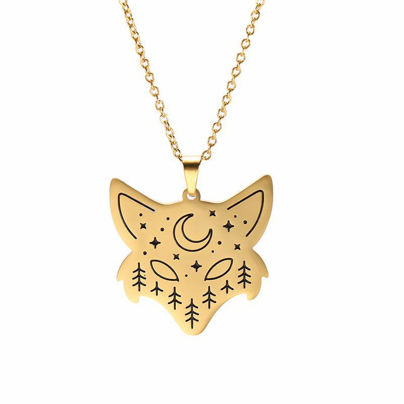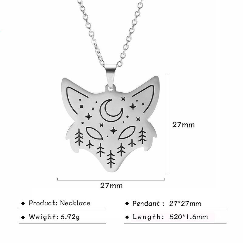 Titanium steel wolf head moon pendant necklace