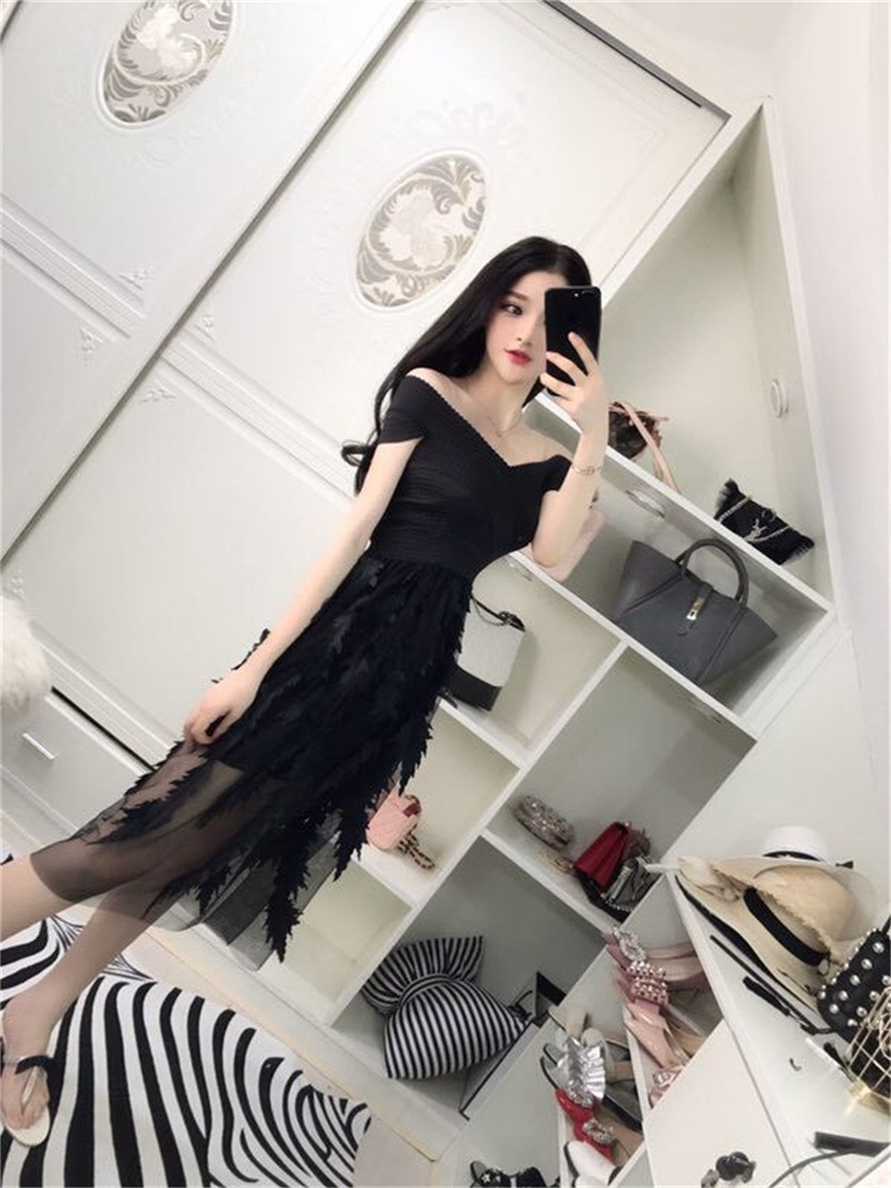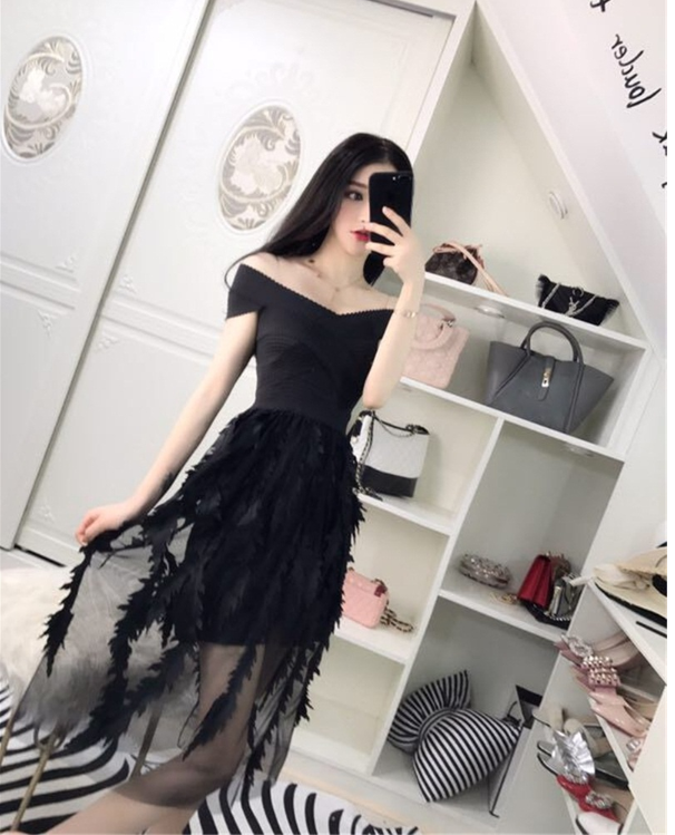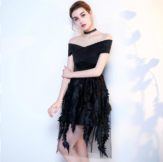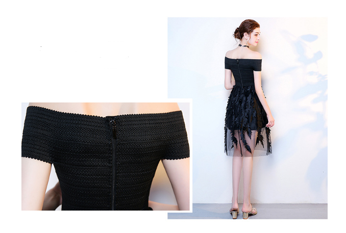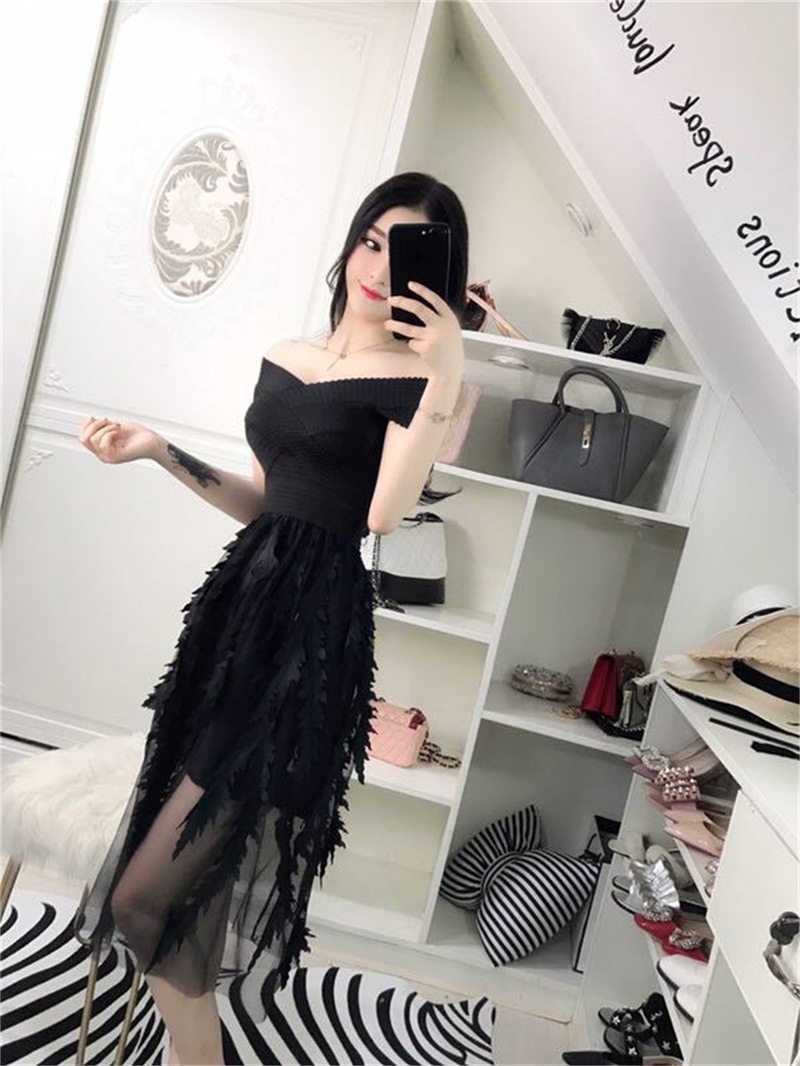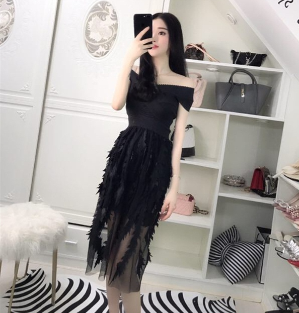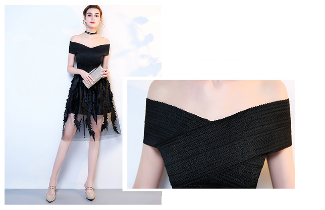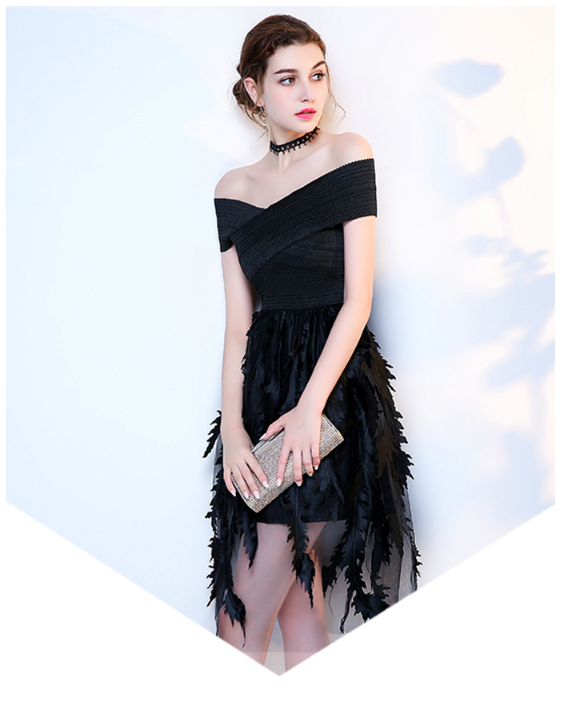 Women's one-necked strapless dress, ladies temperament, slim dinner, black bridesmaid dress, evening dress