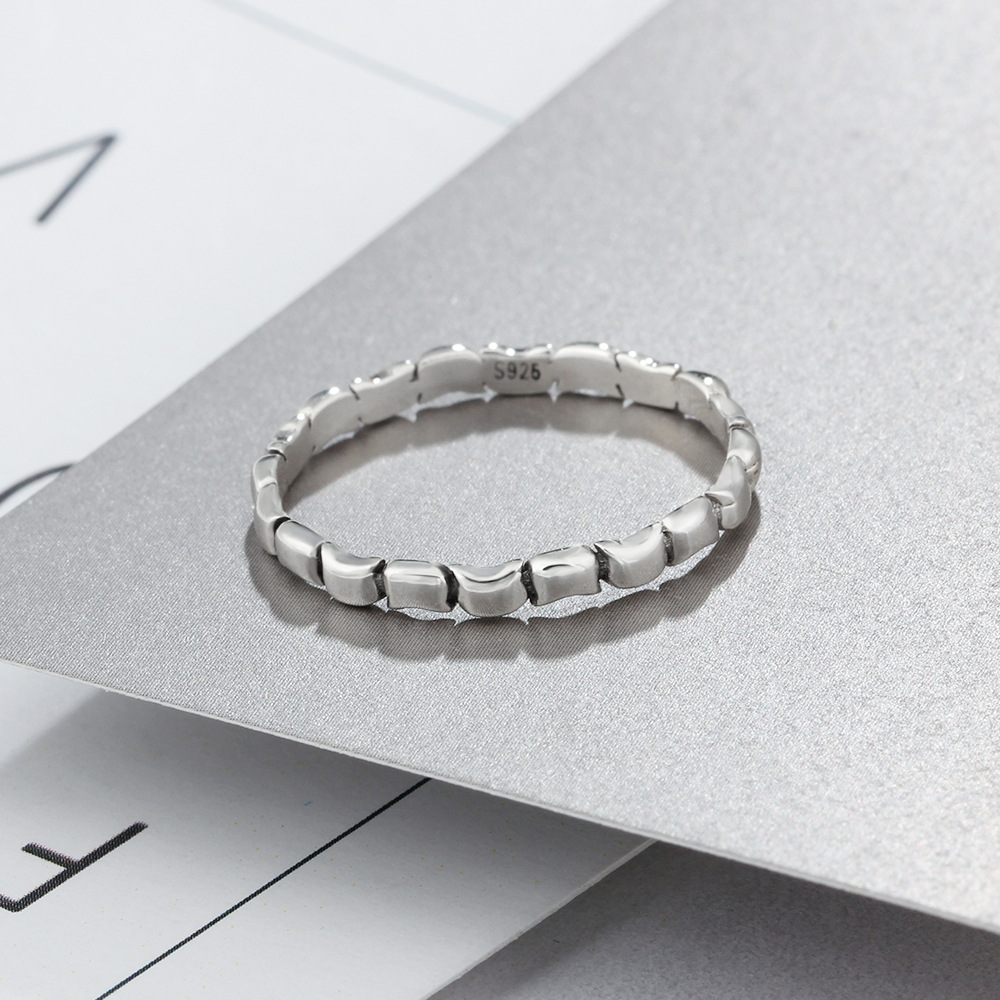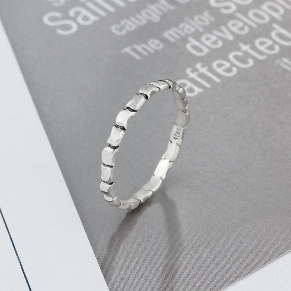 Fine bamboo forefinger sterling silver ring