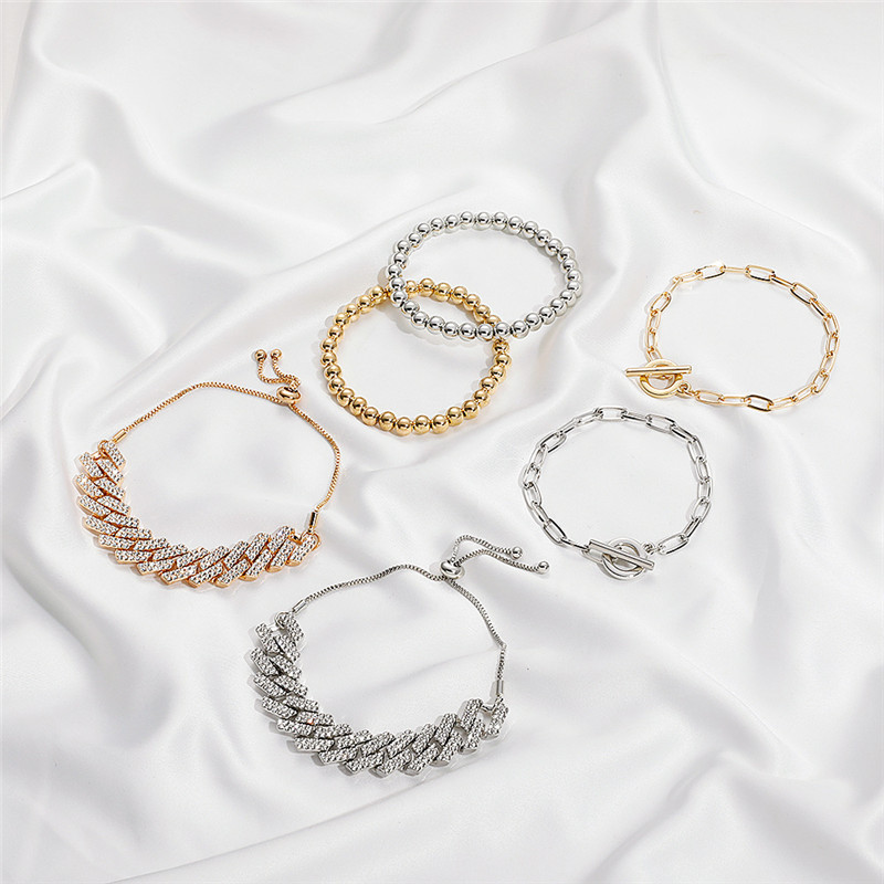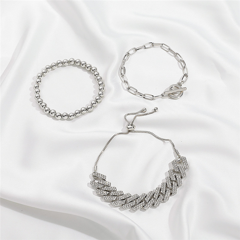 Diamond Bracelet Set Punk Hip Hop Cuban Thick Chain