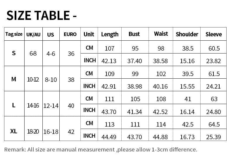 1. Asian sizes are 1 to 2 sizes smaller than European and American people. Choose the larger size if your size between two sizes. Please allow 2-3cm differences due to manual measurement.