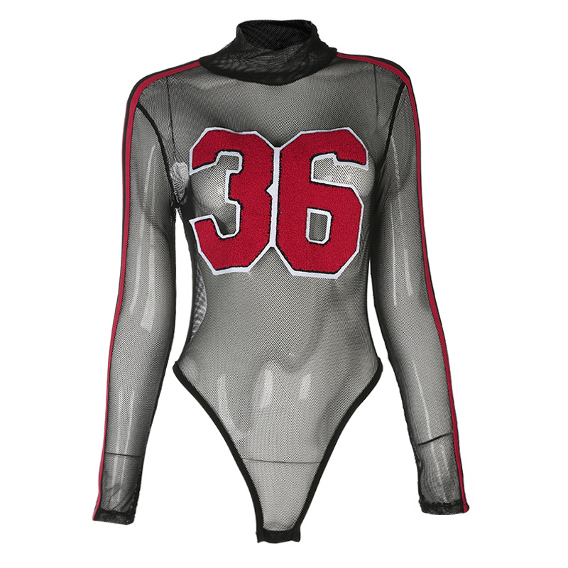 Europe and the United States autumn and winter new mesh bottoming shirt long-sleeved sexy perspective stripes bodysuit onesies