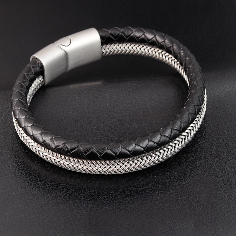 Leather rope bracelet stainless steel leather braid