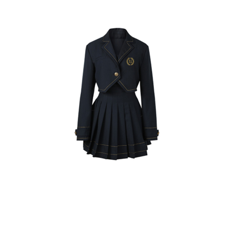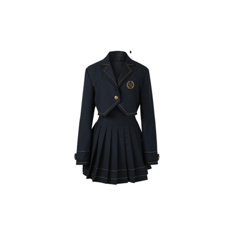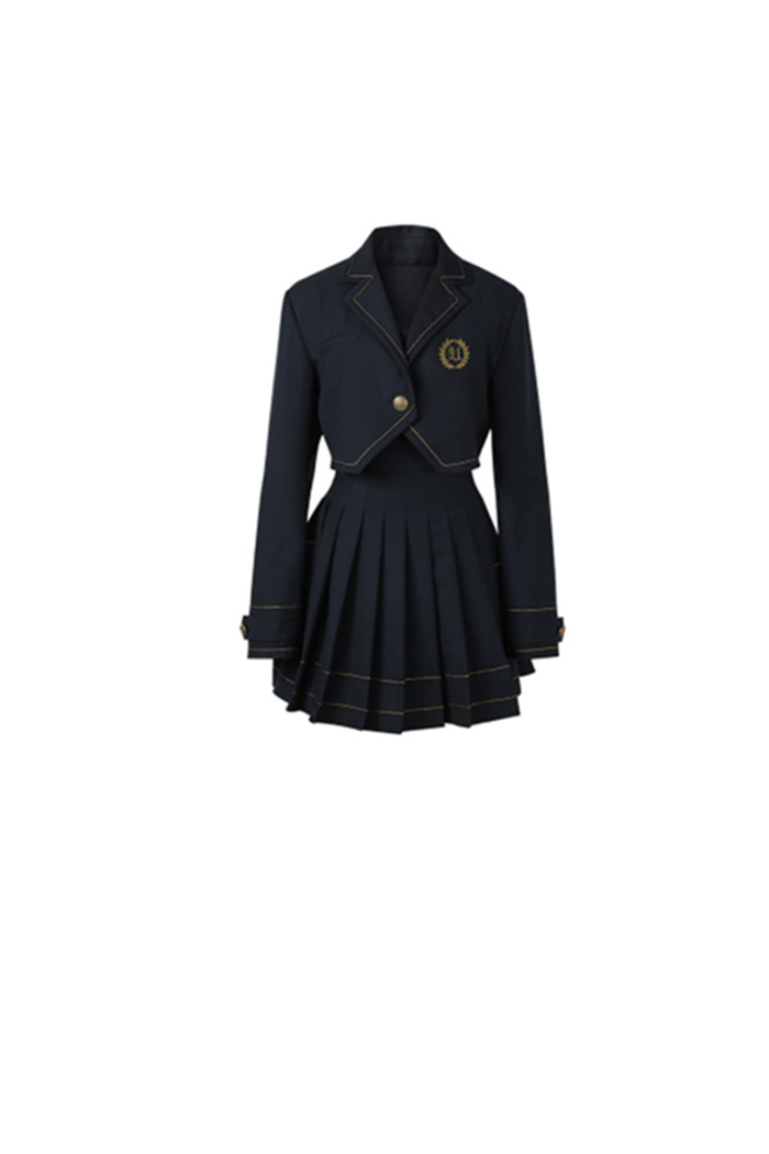 Color classification: navy blue top, navy blue skirt, top + skirt