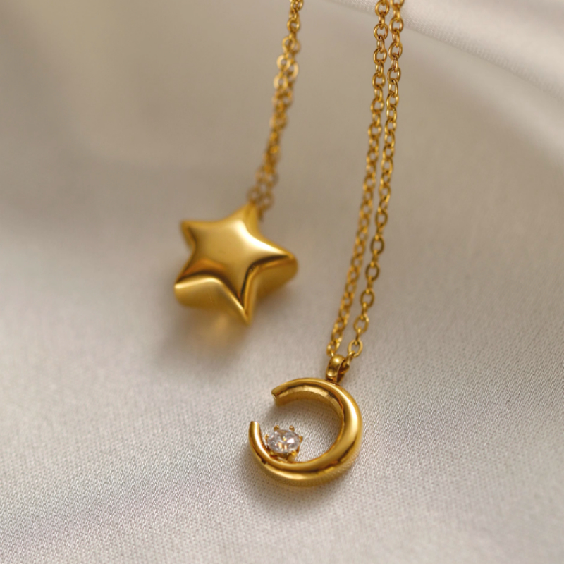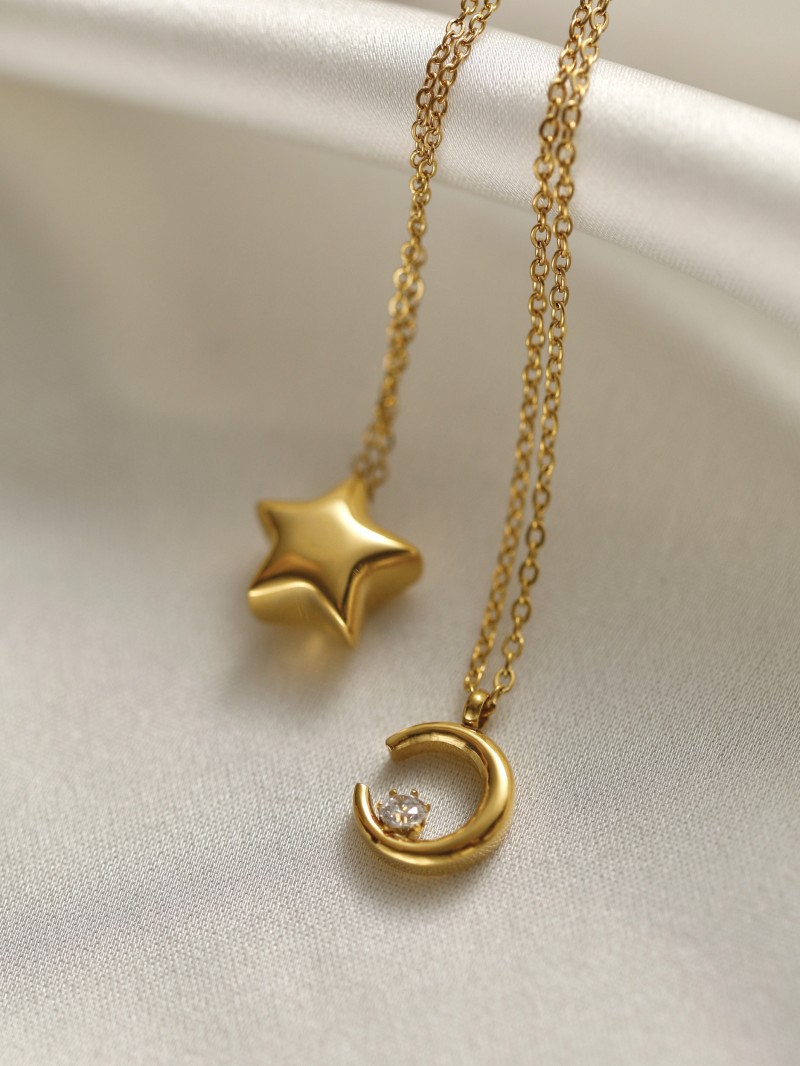 Product information:Chain material: titanium steel Color classification: one XINGX necklace, one moon necklace, Chain style: cross chain Pendant material: titanium steel Inlaid material: unset