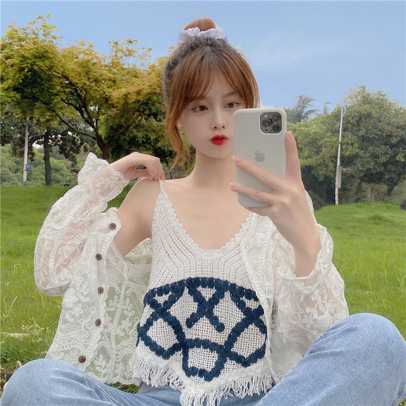 Color: white cardigan, apricot cardigan, white sling, apricot sling