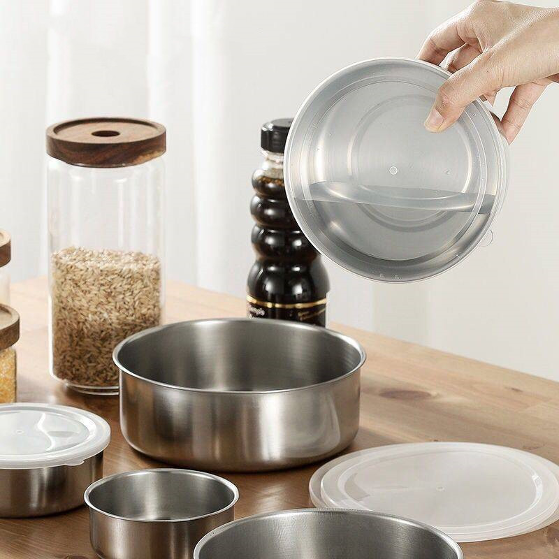 Product information:Name: Clang stainless steel round 5-piece crisper/ice bowlMaterial: 410#Specification: 10/12/14/16/18cmPacking number: 48 sets/carton or 60 sets/cartonWeight: 330g-430gSurface treatment: polishing/painting