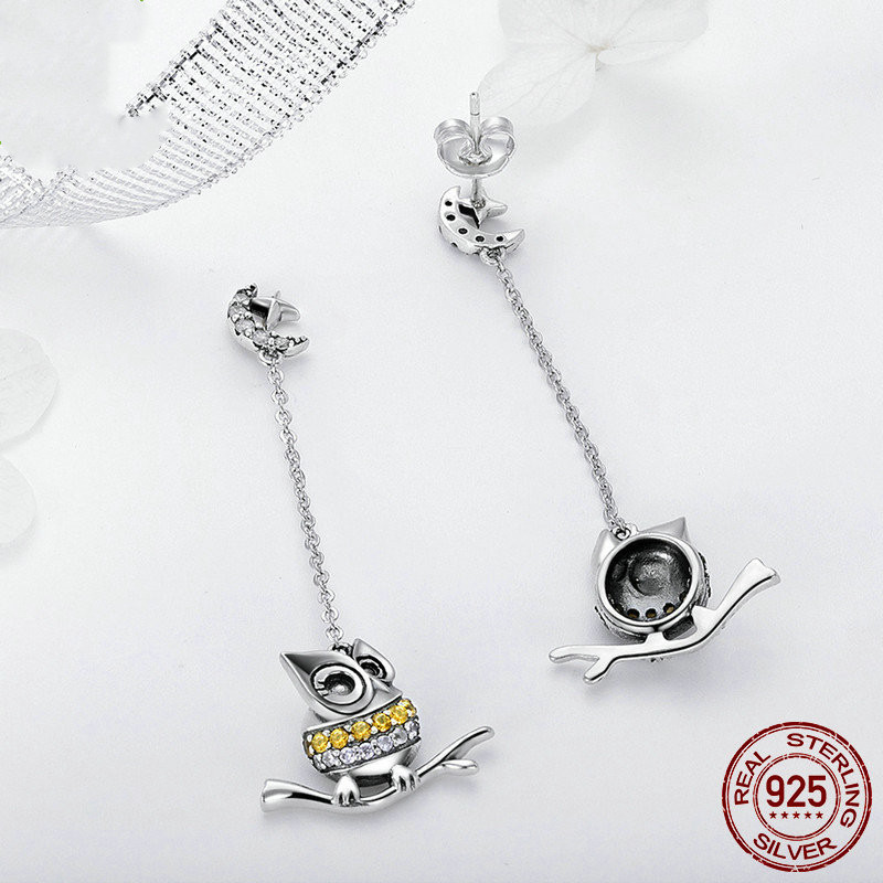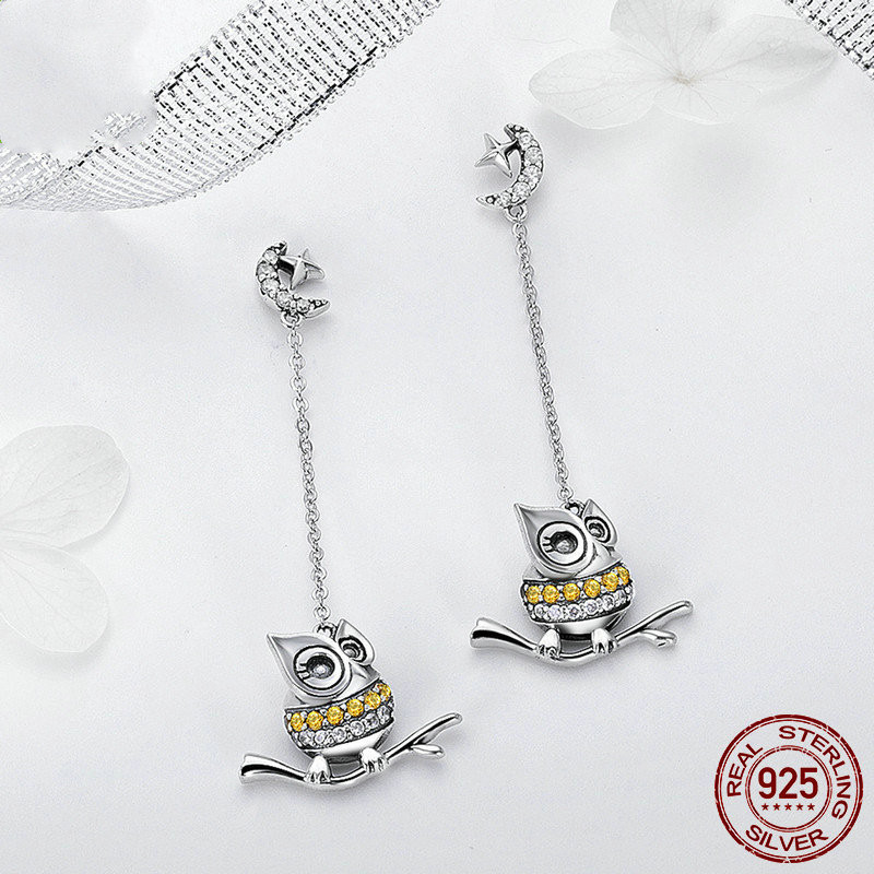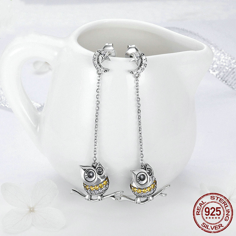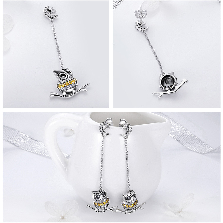 Name: Cute Owl-SCE Silver EarringsType: EarringsStyle: Women'sSpecification: height and width 4.8*1.7cm 4. 4GMaterial: 925 silver zirconia, 92 5% silverPurity: 925 silver