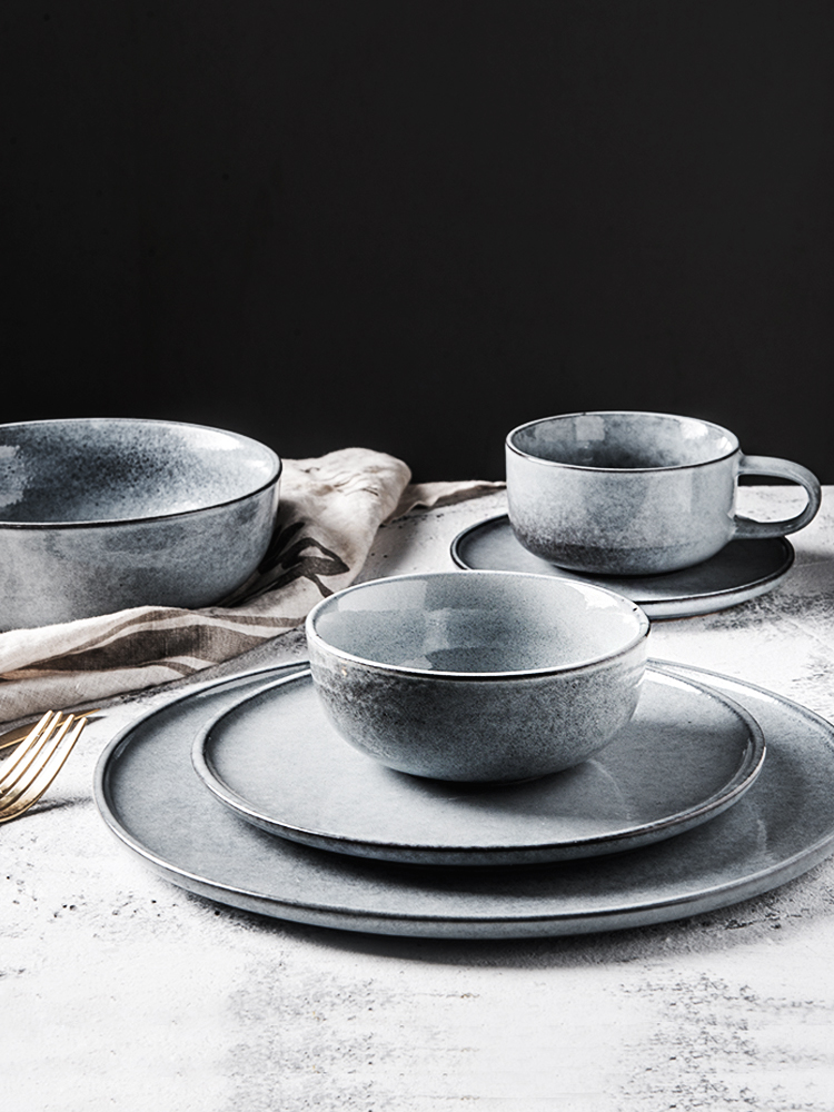 12-piece set A: 5.5-inch rice bowl*2+6-inch round plate*2+ mug tall cup*2+7-inch soup bowl*1+8-inch flat plate*1+small soup spoon*2+wood chopsticks*2