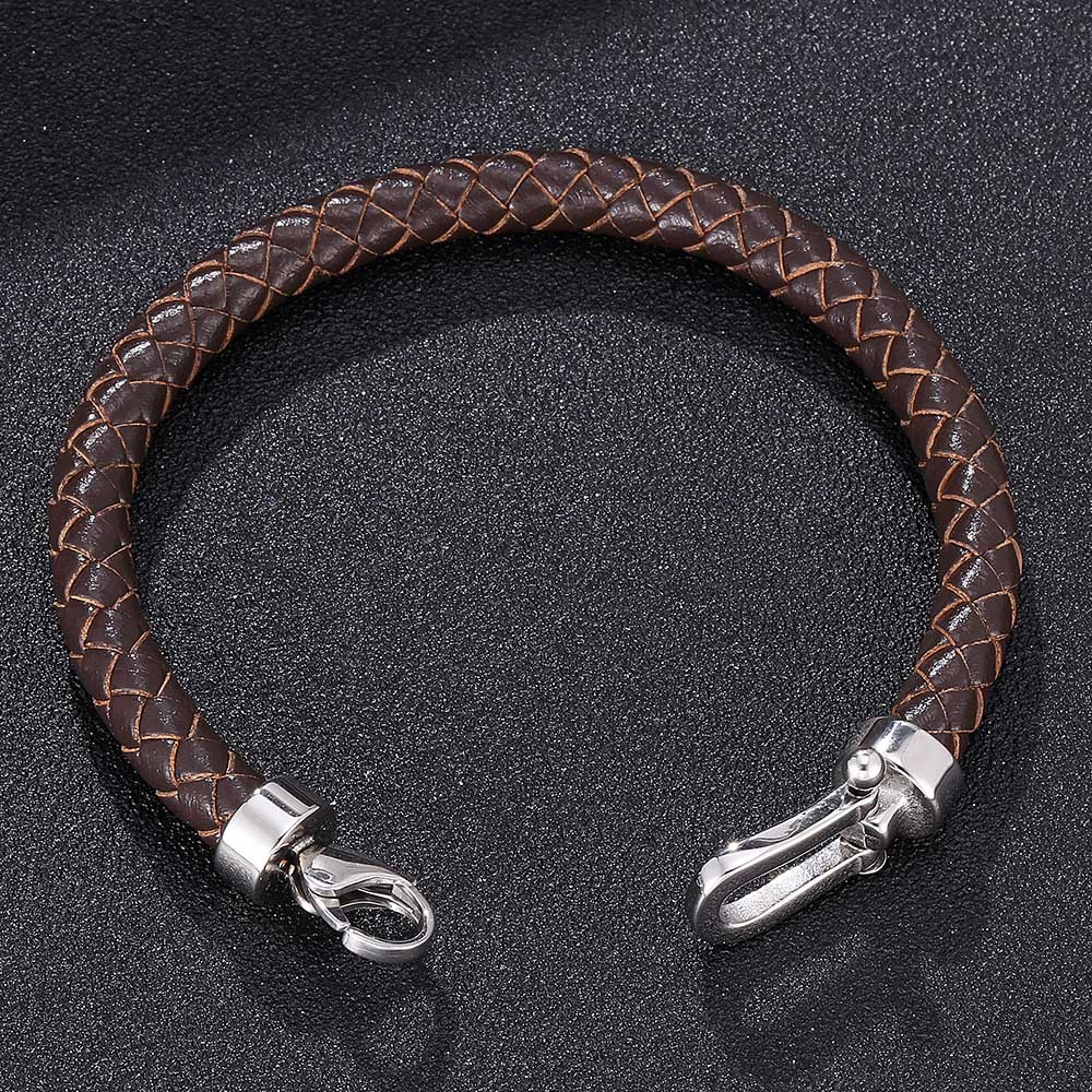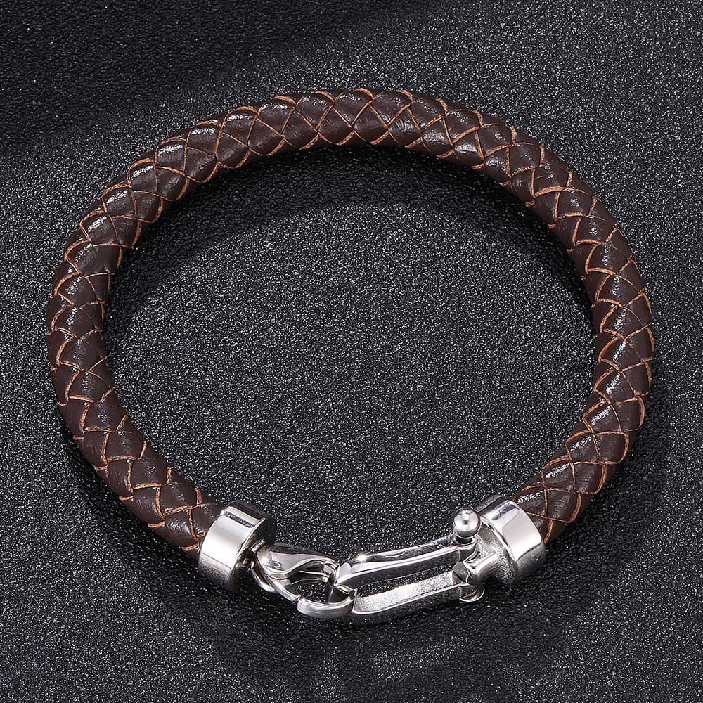 Material: Stainless steel + two-layer leatherStyle: UnisexModeling: GeometricPackaging: Individually packedInlay material: Not inlay