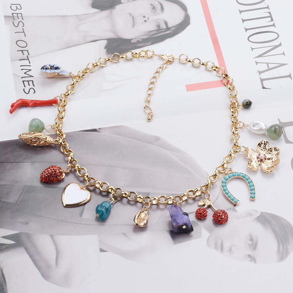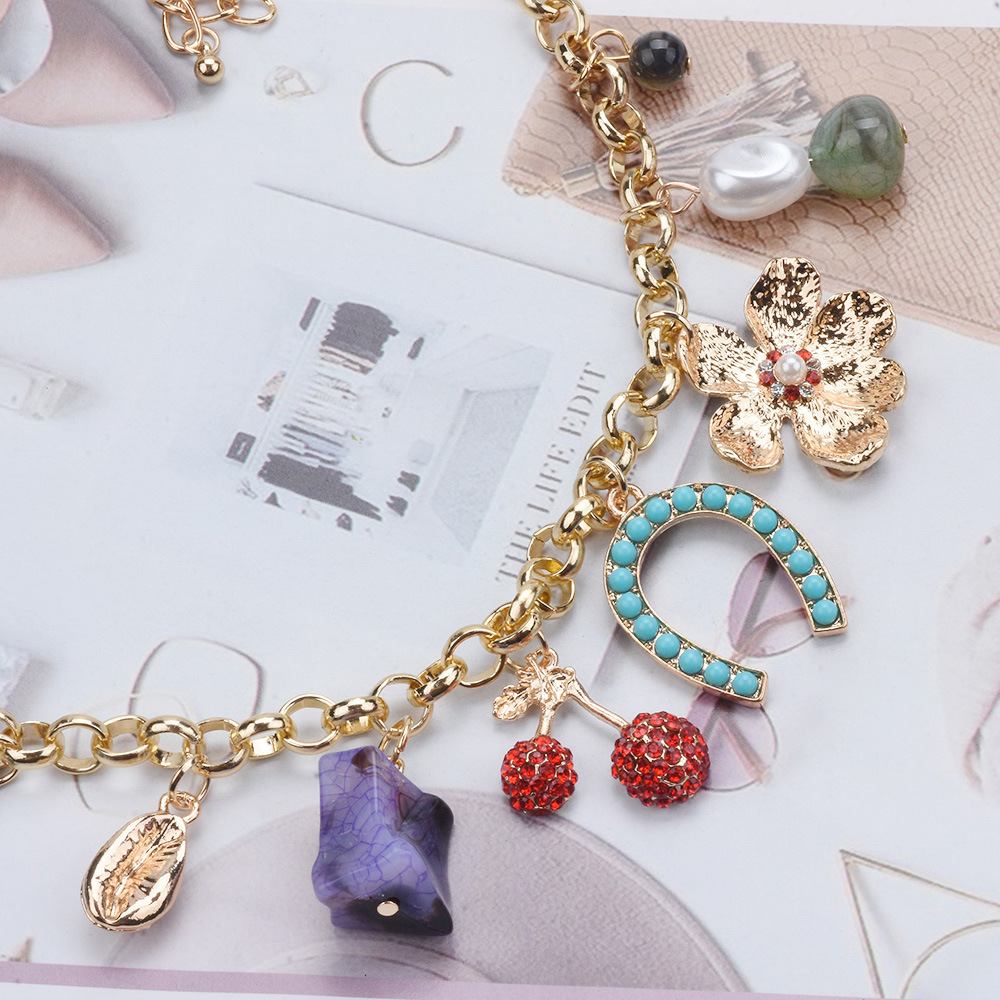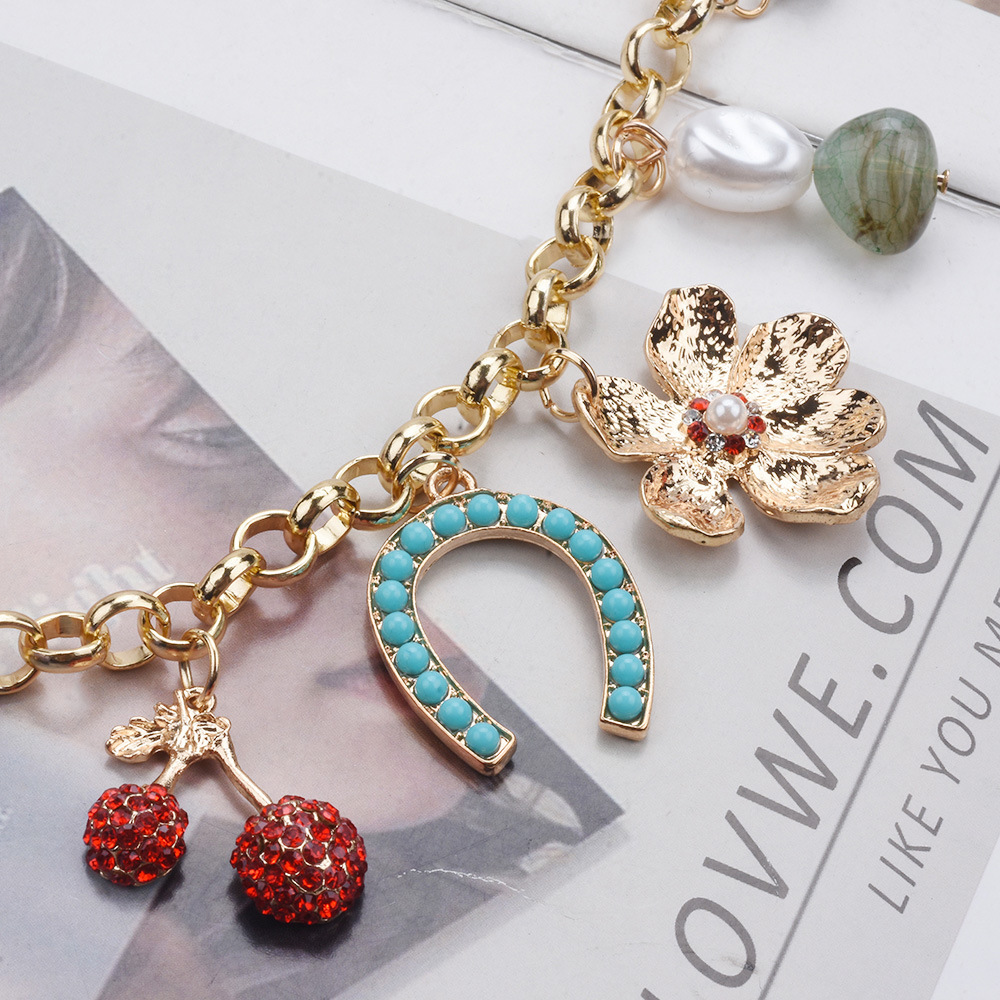 Product information:Treatment Process: Electroplating Color: Gold Applicable population: Female Chain style: curb necklace Material: Alloy Popular elements: Flowers