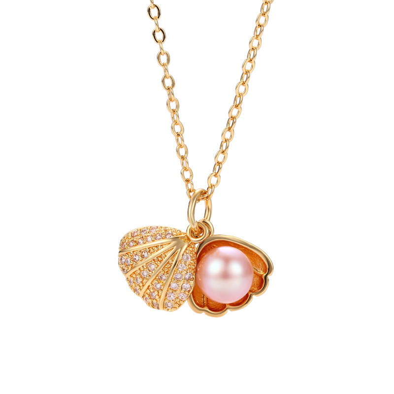 D Style: Single pendant with pearl pink 8m gold color