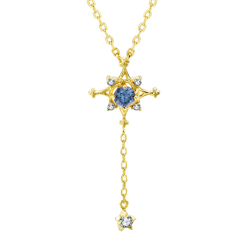 Product: NecklaceMatching stone: Tanzanite zirconium. White zirconiumItem No.: ALTB- 345ACraft: Hand setPlating: 14K yellowTypeface: S925