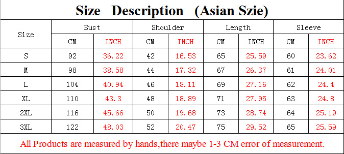 1. Asian sizes are 1 to 2 sizes smaller than European and American people. Choose the larger size if your size between two sizes. Please allow 2-3cm differences due to manual measurement.