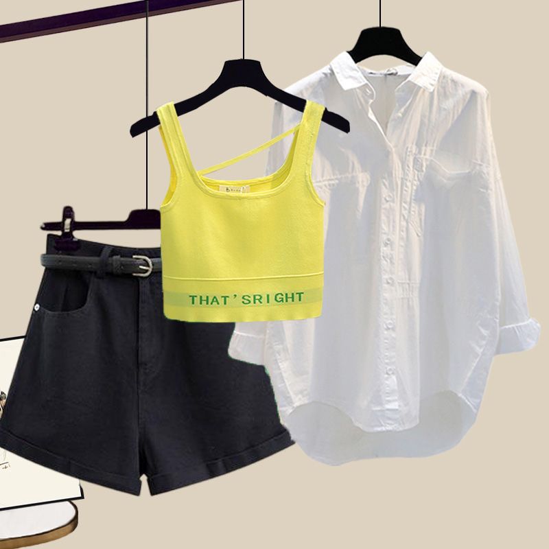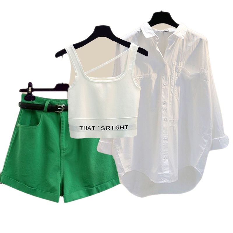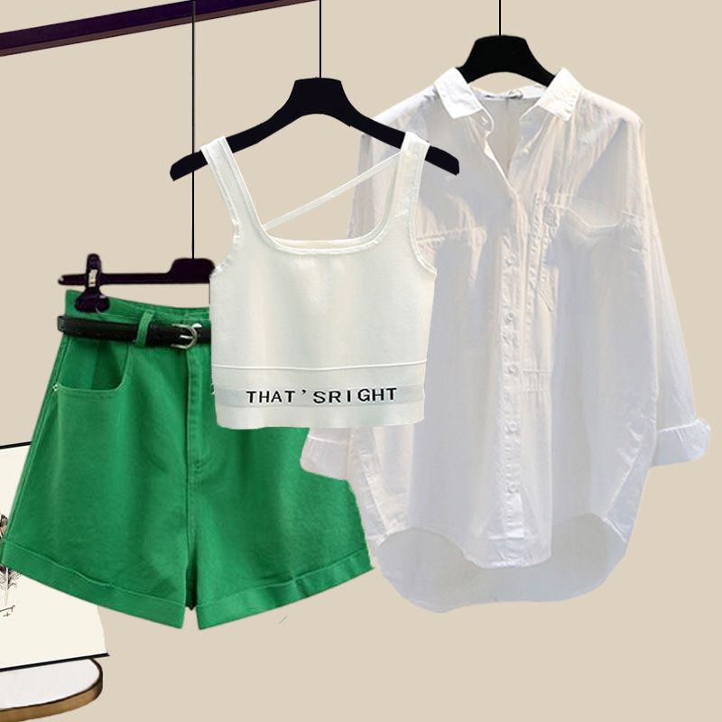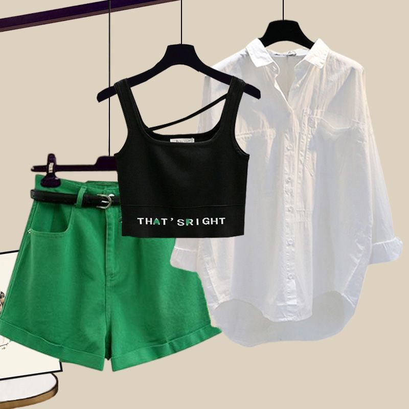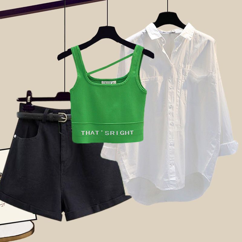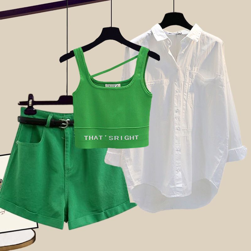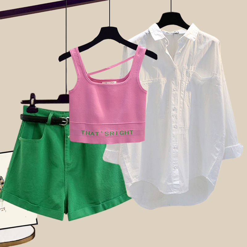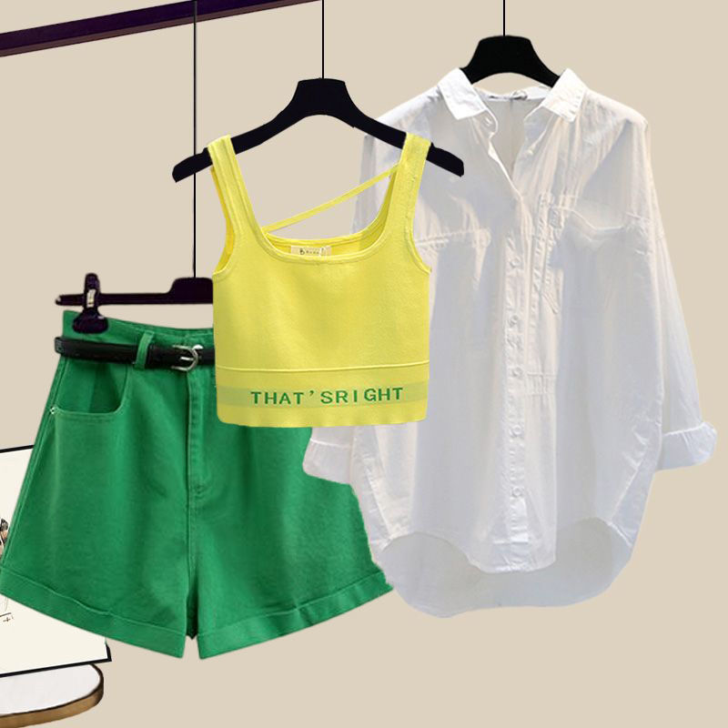 Color: a yellow vest, a black vest, a green vest, a pink vest, a white vest, a green shorts, a single black shorts, a single white shirt, green shorts white shirt green vest, green shorts white shirt black vest, green shorts white shirt pink vest, green shorts white shirt yellow vest, green shorts white shirt white vest, black shorts white shirt green vest, black shorts white shirt black vest, black shorts white shirt pink vest, black shorts white shirt yellow vest, black shorts white shirt white vest