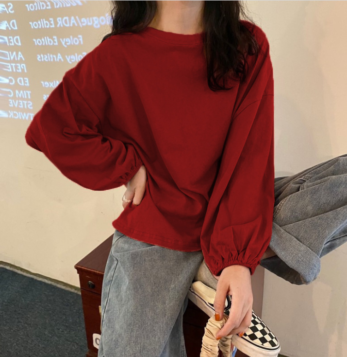 Turtleneck loose high neck lantern sleeve ladies chiffon shirt