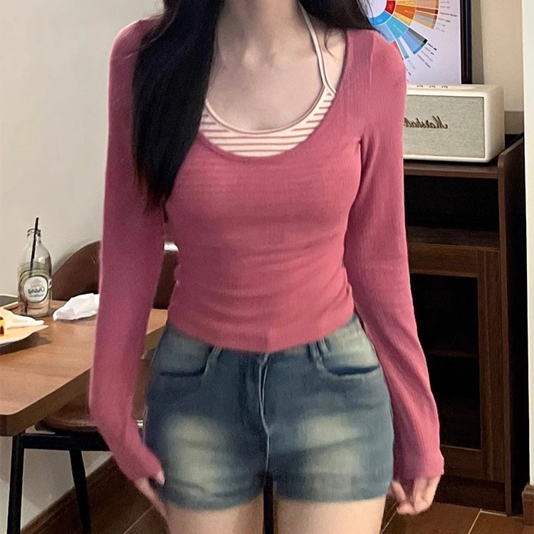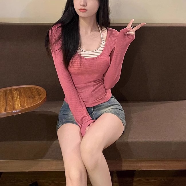 Product information: Pattern: stripes Color: pink two-piece set Size: S,M,L,XL,XXL Style: slim fit Fabric name: high elastic thread Sleeve length: long sleeve Style: European and American style Craft: yarn-dyed