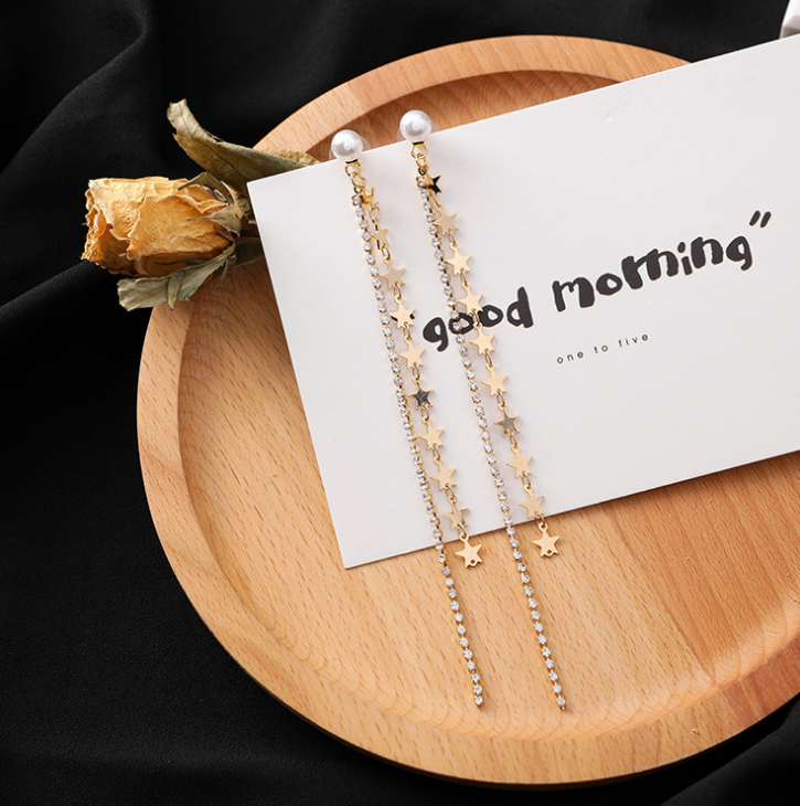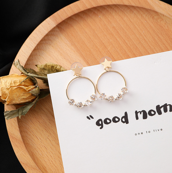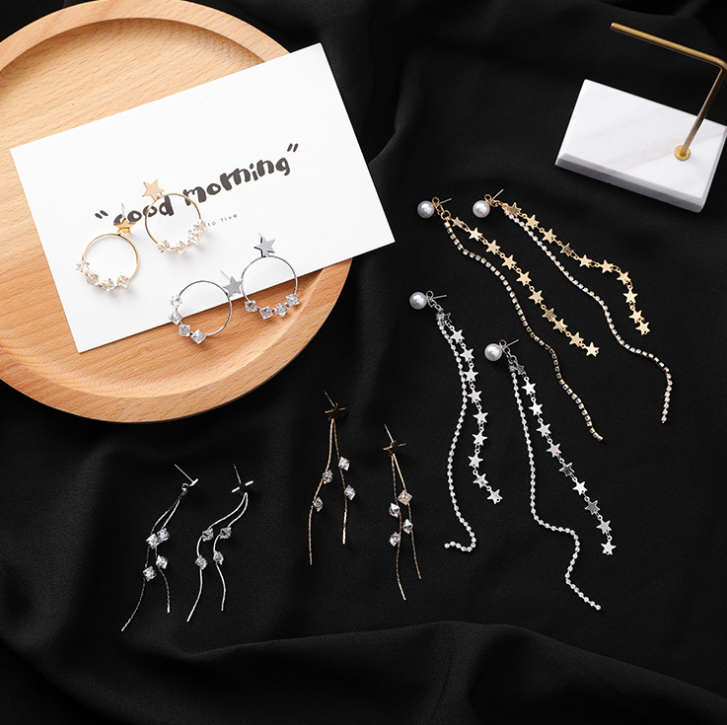 Material Alloy Style Korean Korean/Korean Style Style women's style star processing technology plating Applicable gifts occasions Opening ceremony, employee benefits, trade fairs, weddings, housewarming, public relations planning, birthdays, travel commemorations, anniversary celebrations, awards commemorative, advertising promotions, festivals, business gifts, packaging, independent packaging Inlay material Alloy inlaid artificial gemstone / semi-precious stone Main downstream platform wish, Amazon, AliExpress, independent station Color A gold (star tassel short), B silver (star tassel short), C gold (star tassel long), D silver (star tassel long), E gold (ring rhinestone), F silver (ring rhinestone)