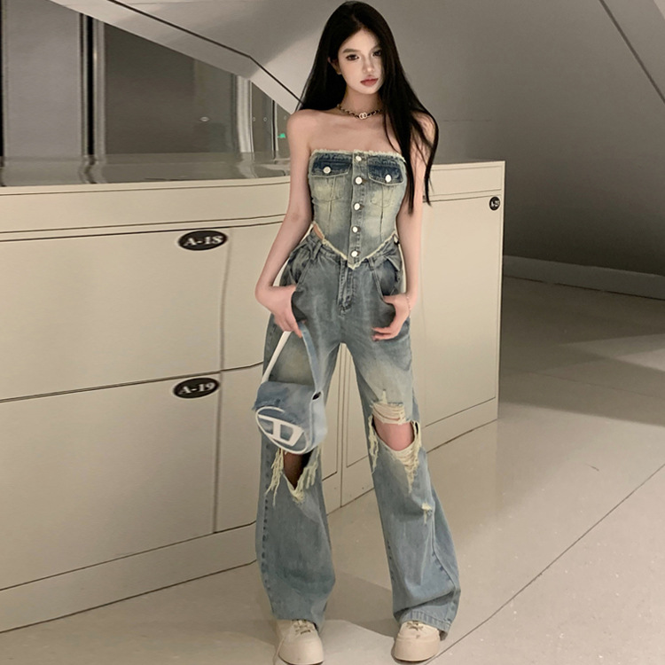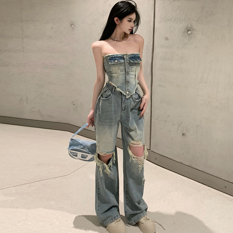 Color: D3-0657# denim jacket, D3-0658# denim trousers