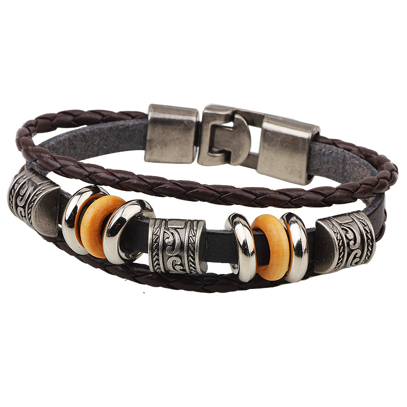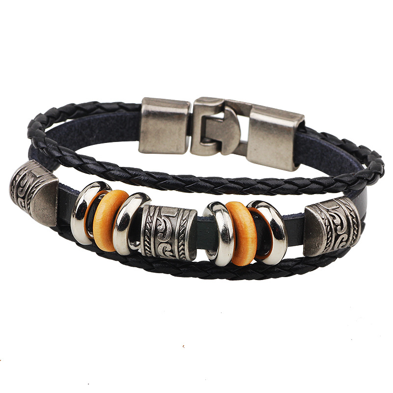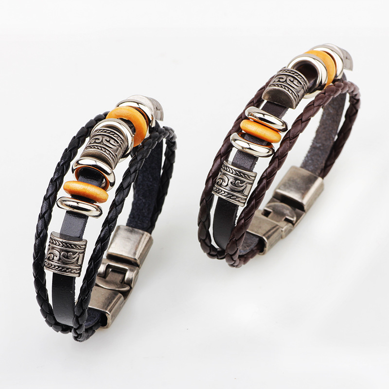 Material: leatherTreatment process: BeadedStyle: UnisexPackaging: Individually packedInlay material: alloyColor: black, brownSize: Diameter 6CM, adjustable size, tiled 20CM