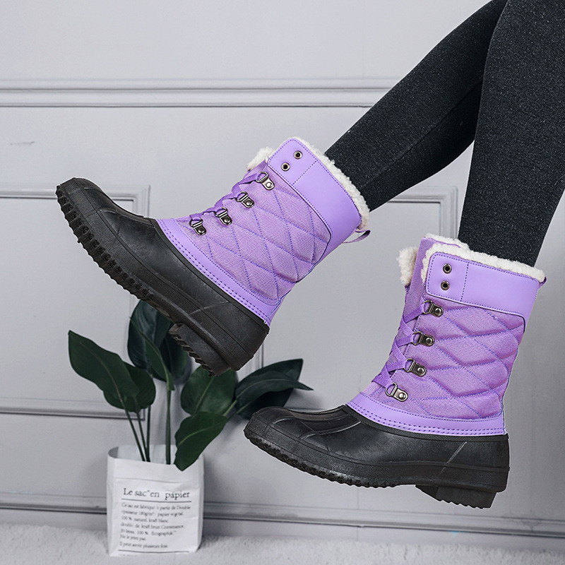 Product Information:Upper height: highToe shape: round toePattern: plainColor: purple, black, brownProduct category: snow bootsTube height: medium bootsSize Information:Size: 6,7,8,9,10,11