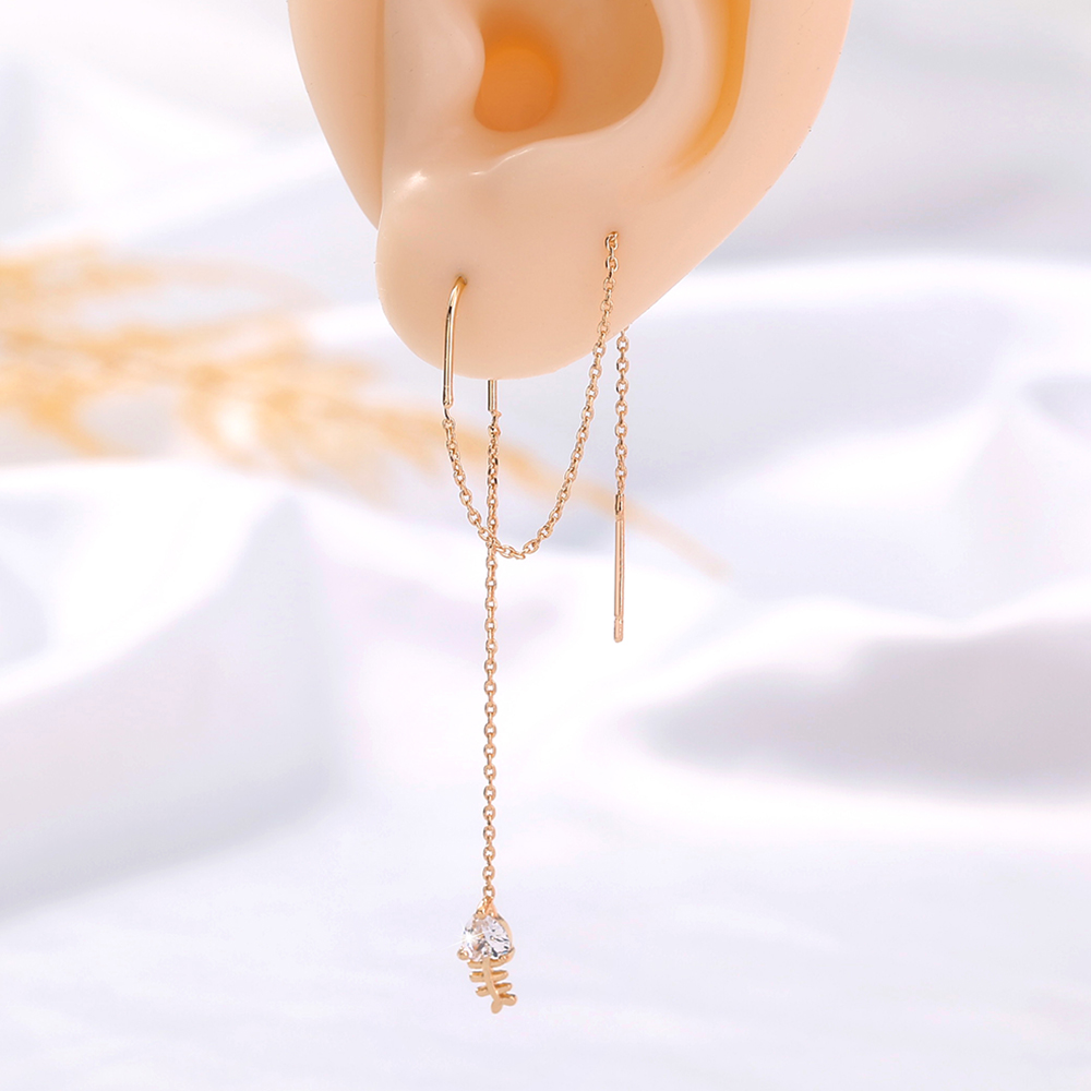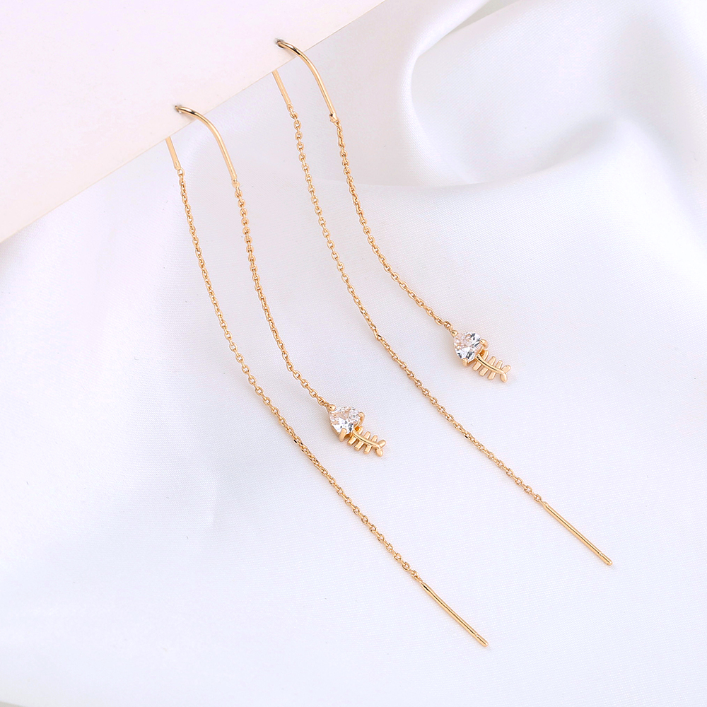 Gold Bronze Fishbone Micro Inlaid Zircon Long Tassel Earrings
